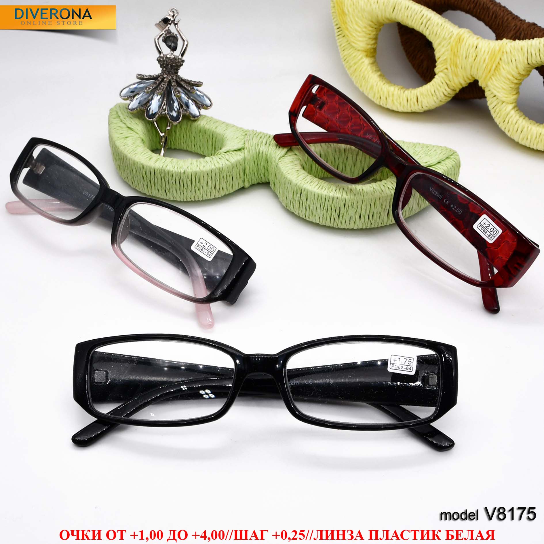 Очки с диоптриями в пластиковой оправе с флексом VIZZINI V8175 от +1,00 до +4,00 (шаг 0,25)