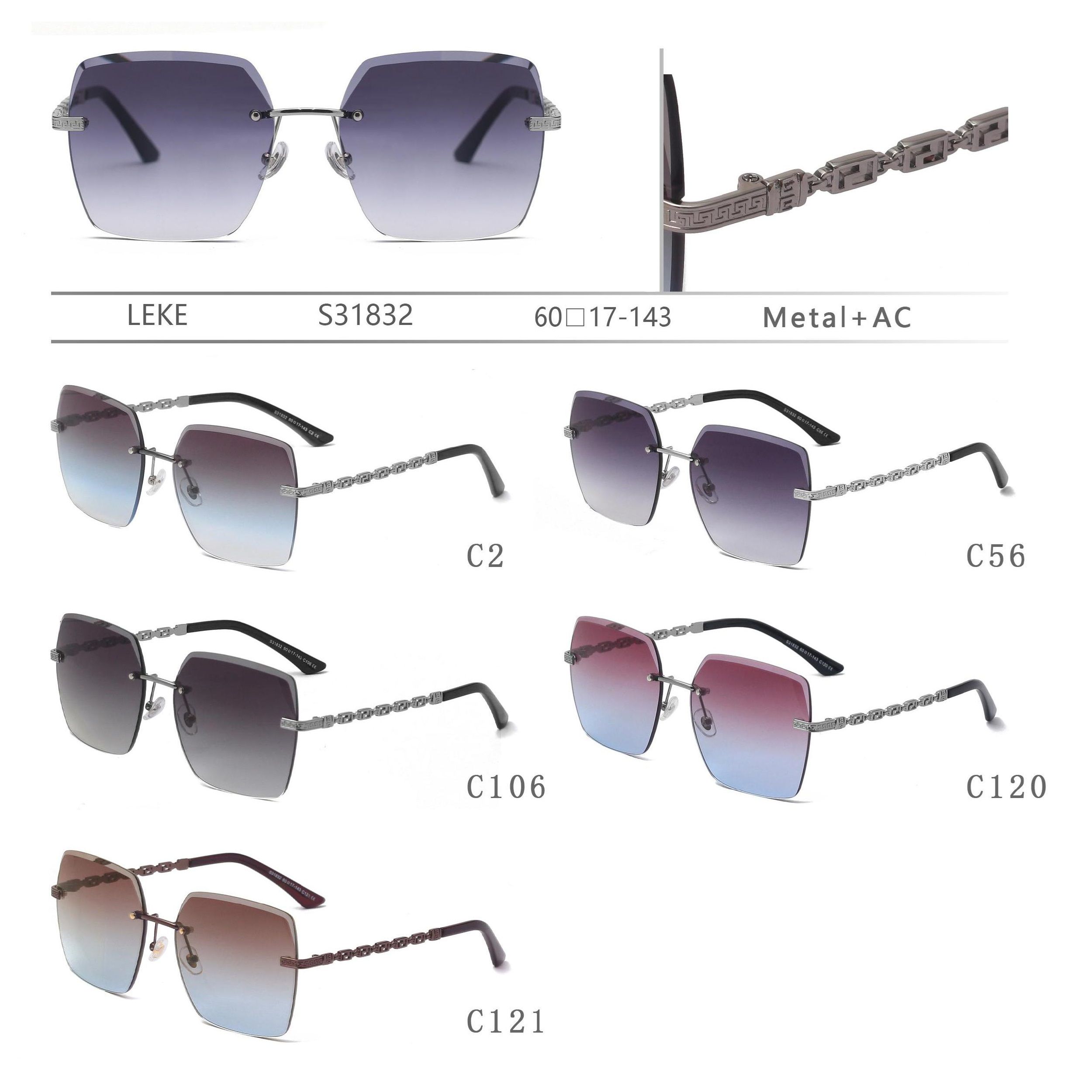 Солнцезащитные поляризационные безободковые металлические очки Leke S31832
