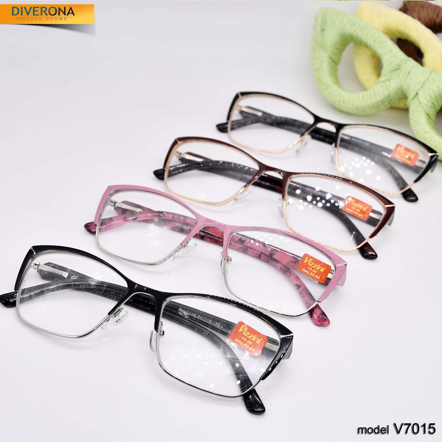 Очки женские металлические с флексами Vizzini V7015, диоптрии: +1,00 до +4,00 (шаг 0,25); -1,00 до -8,00 (шаг 0,5), белые линзы