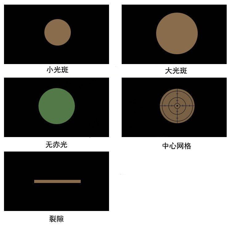 - Форма освещения: большое пятно, малое пятно, щель, концентрационная шкала, без красного фильтра