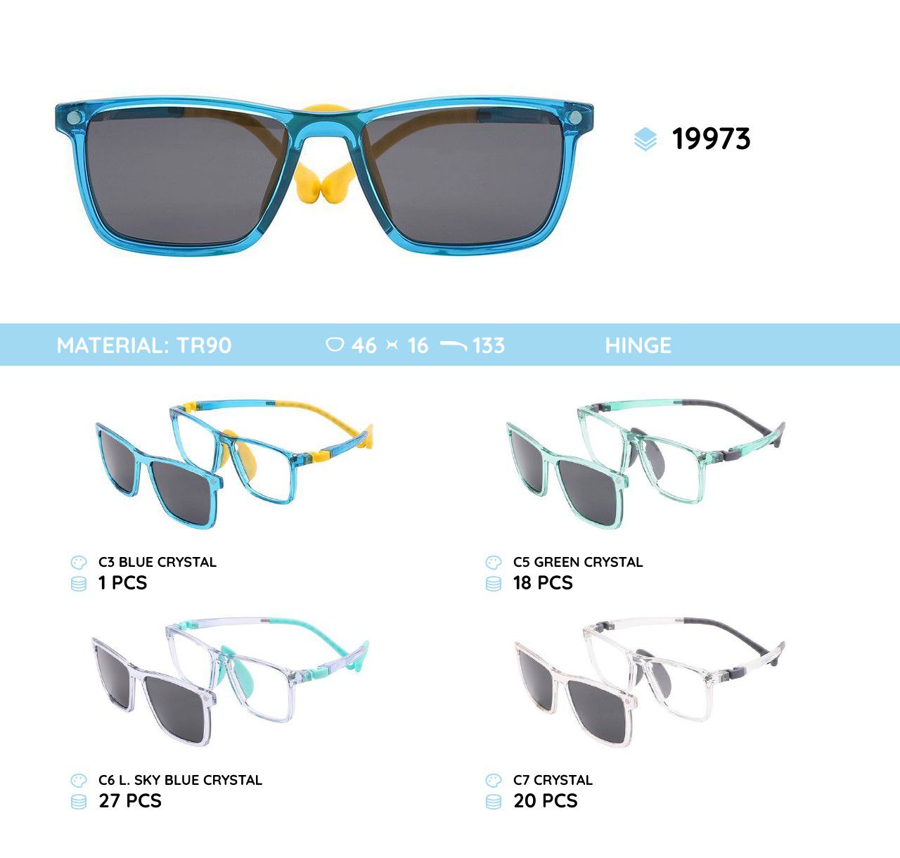 Оправа пластиковая детская из материала TR-90 с солнцезащитной насадкой (клипон) 19973
