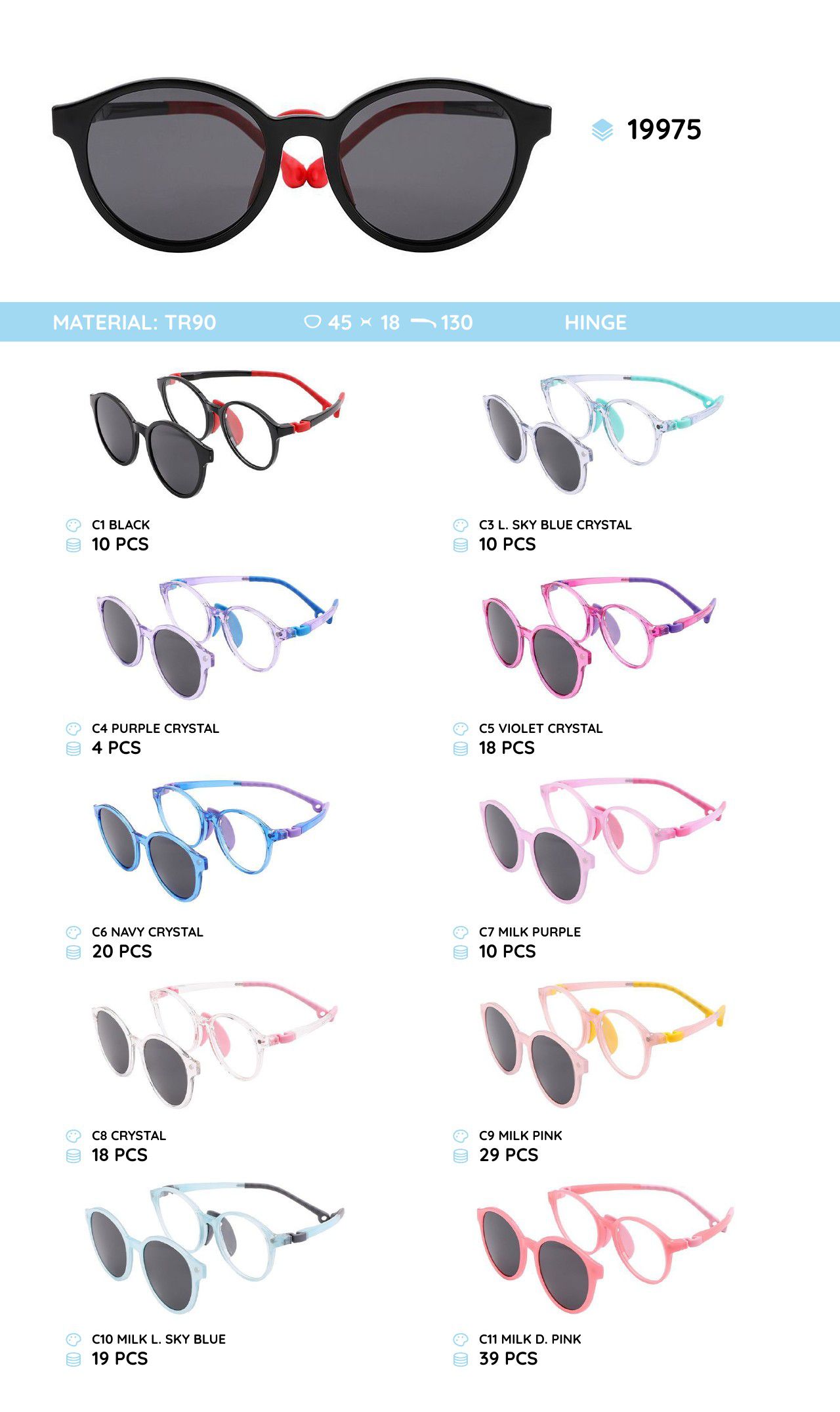 Оправа пластиковая детская из материала TR-90 с солнцезащитной насадкой (клипон) 19975