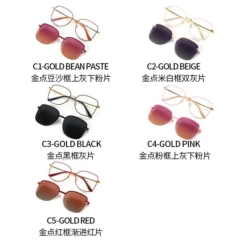 Оправа металлическая с защитой от синего света + магнитная солнцезащитная насадка (клипон) 7004-GT