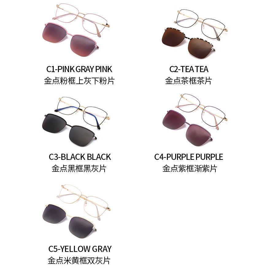Оправа металлическая кошачий глаз с защитой от синего света с флексом + магнитная солнцезащитная насадка (клипон) 7018-GT