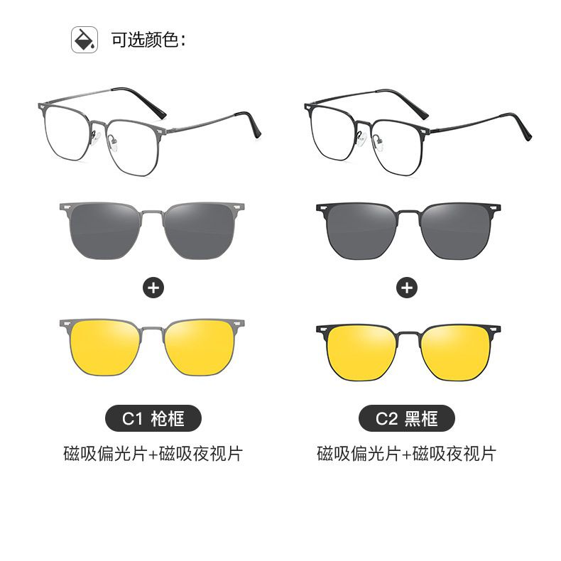 Оправа металлическая с защитой от синего света + 2 магнитные солнцезащитные насадки (клипон) 7600-GT