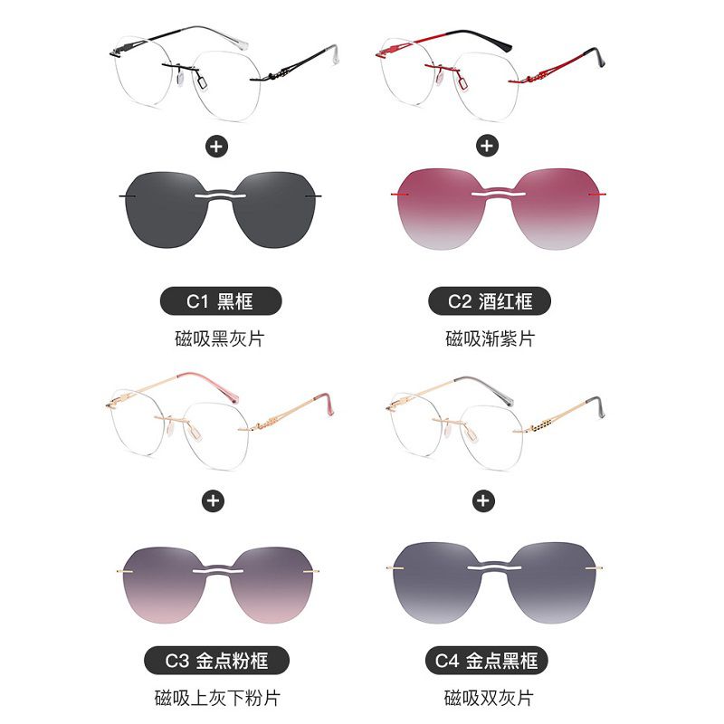 Оправа безрамочная металлическая женская + магнитная солнцезащитная насадка (клипон) 7200-GT