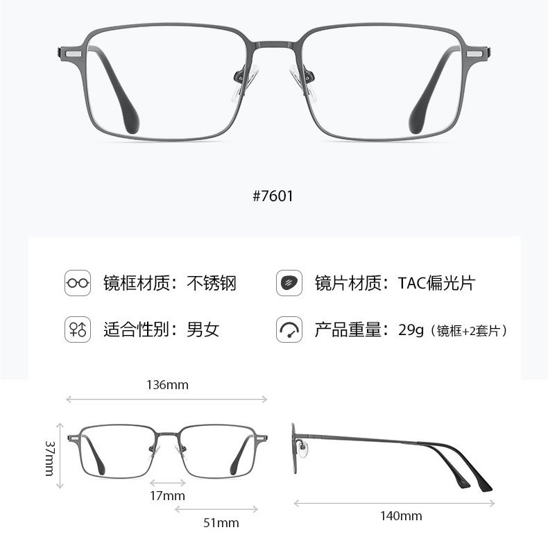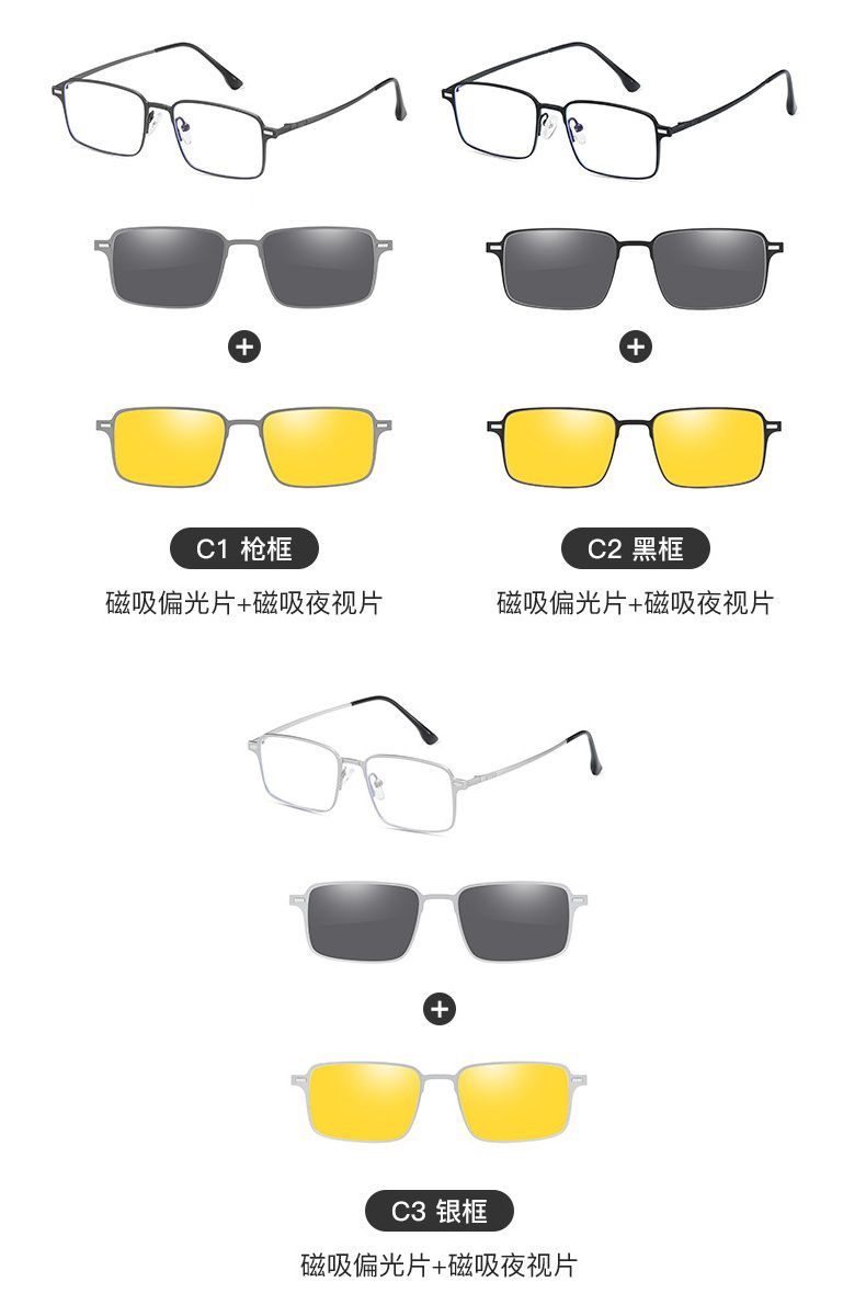Оправа металлическая с защитой от синего света + 2 магнитные солнцезащитные насадки (клипон) 7601-GT