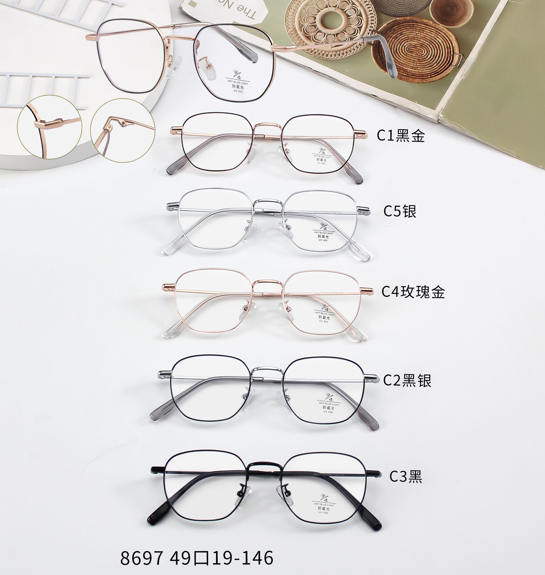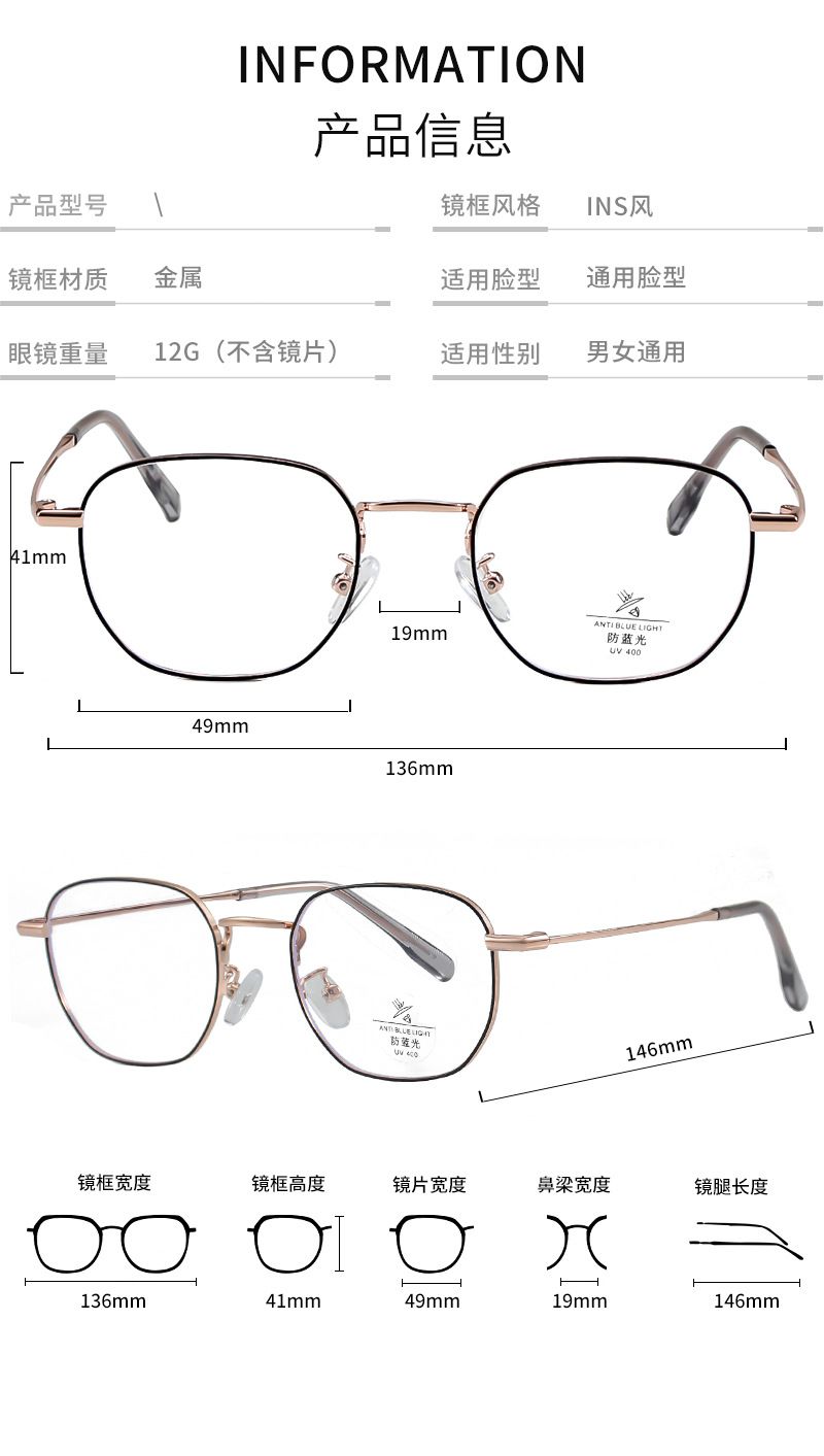 Оправа металлическая с линзами Blue Ray Cut MAMO 8697