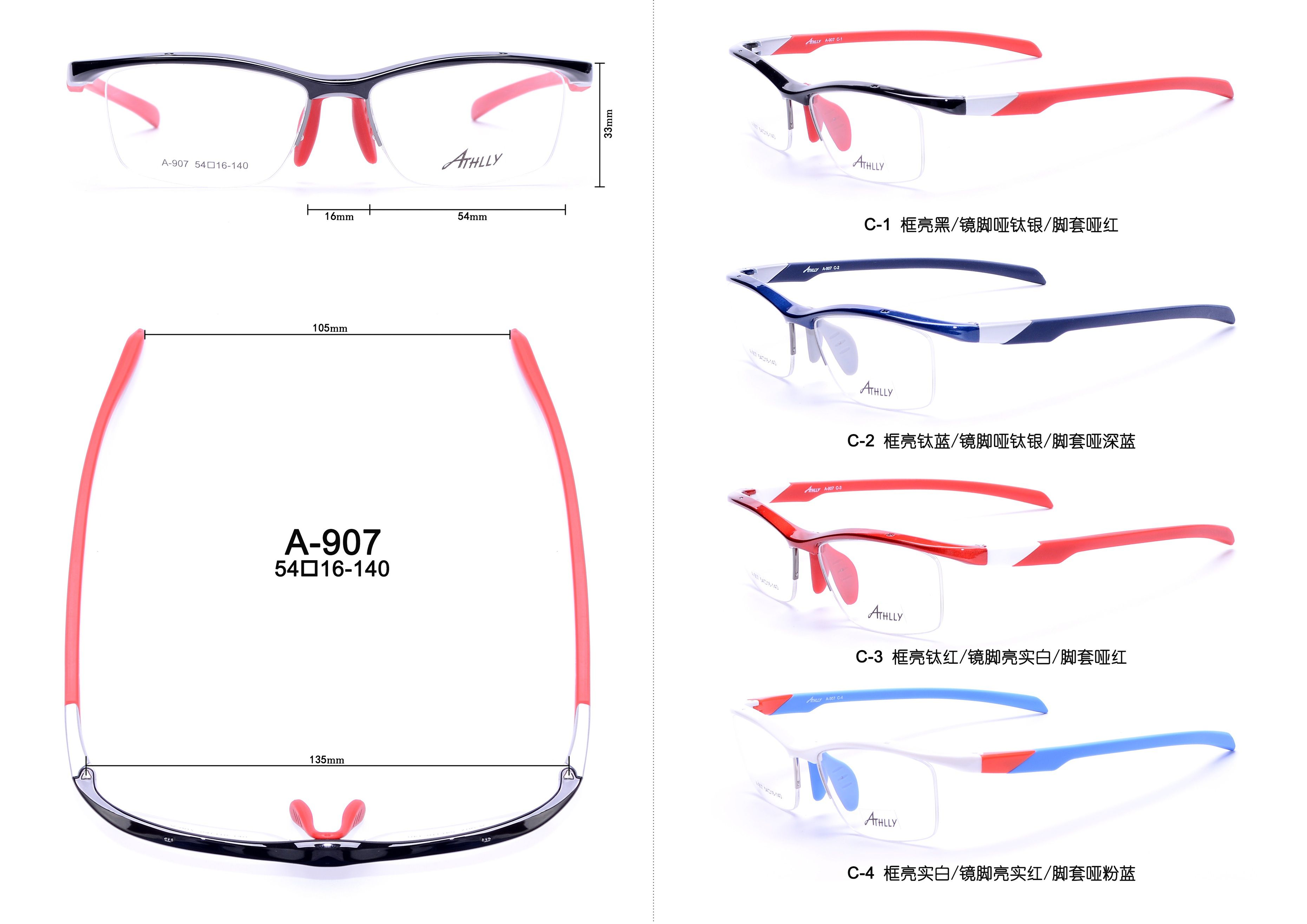 Оправа спортивная полуободковая пластиковая из материала TR90 Athlly A-907 (скидки см. в таблице)