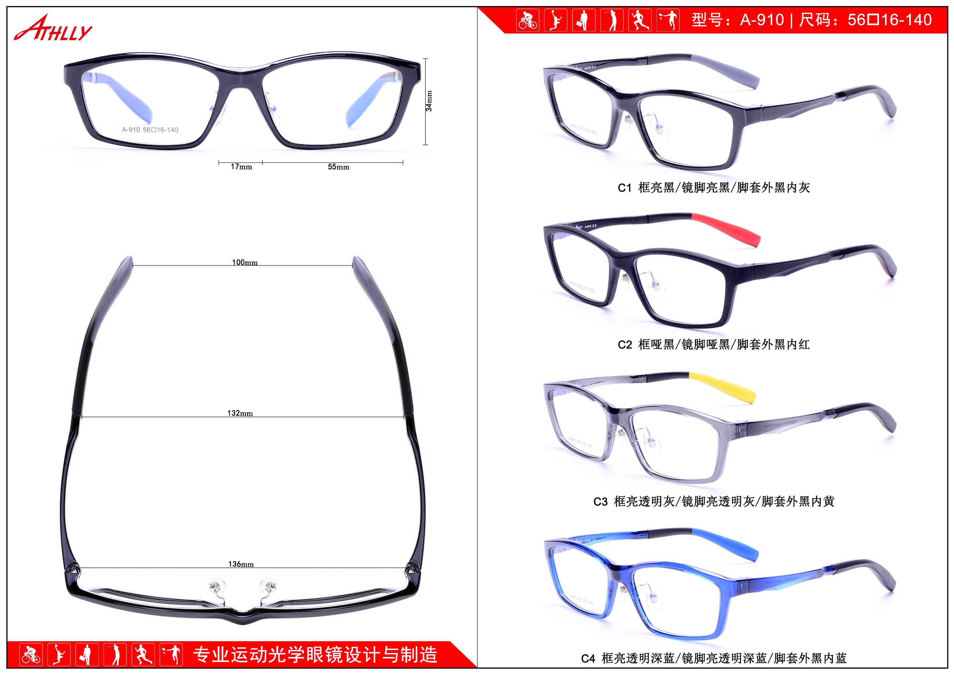 Оправа спортивная пластиковая из материала TR90 Athlly A-910 (скидки см. в таблице)