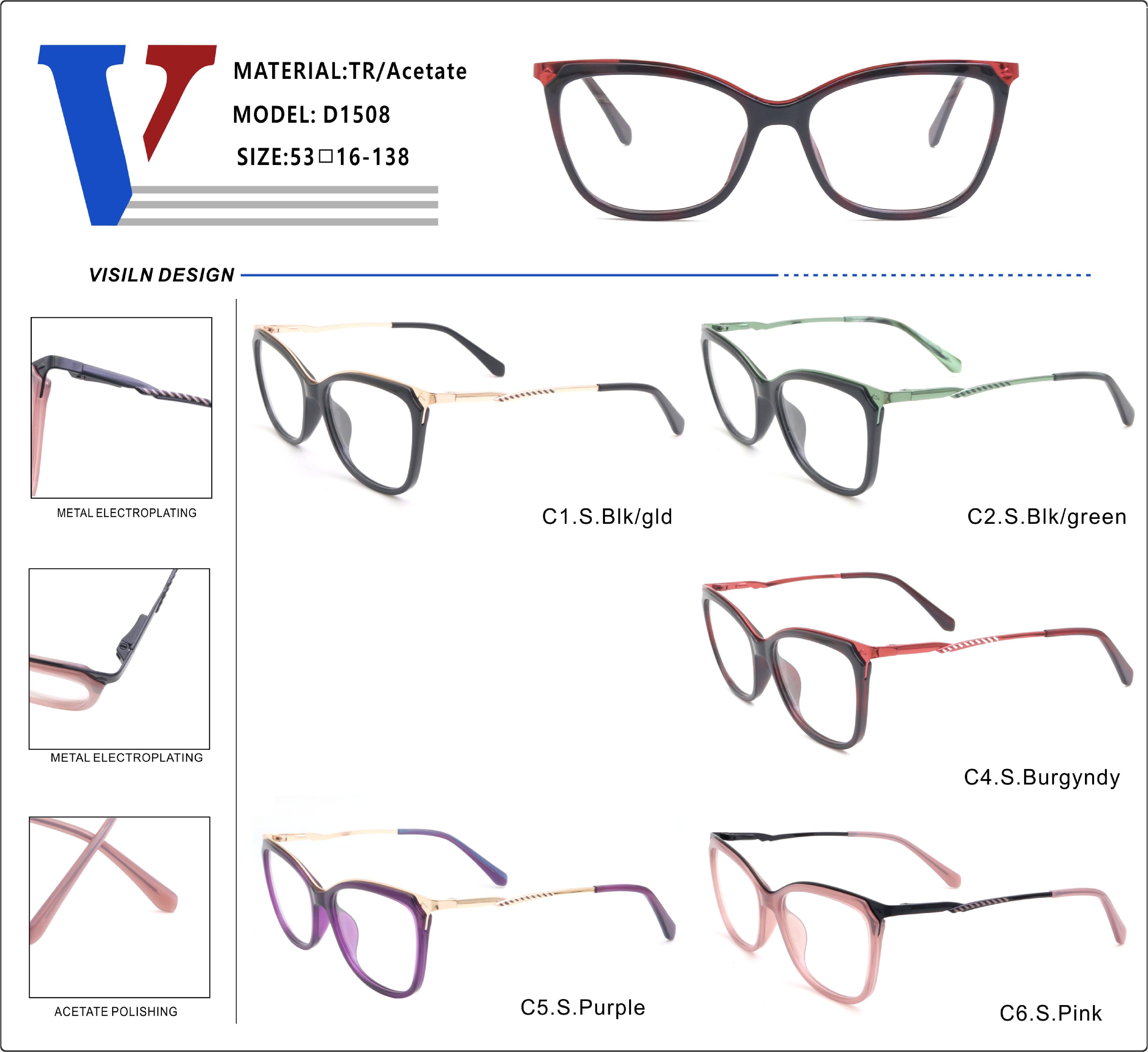 Оправа пластиковая из ацетата TR90 + металл с флексом D1508-DA