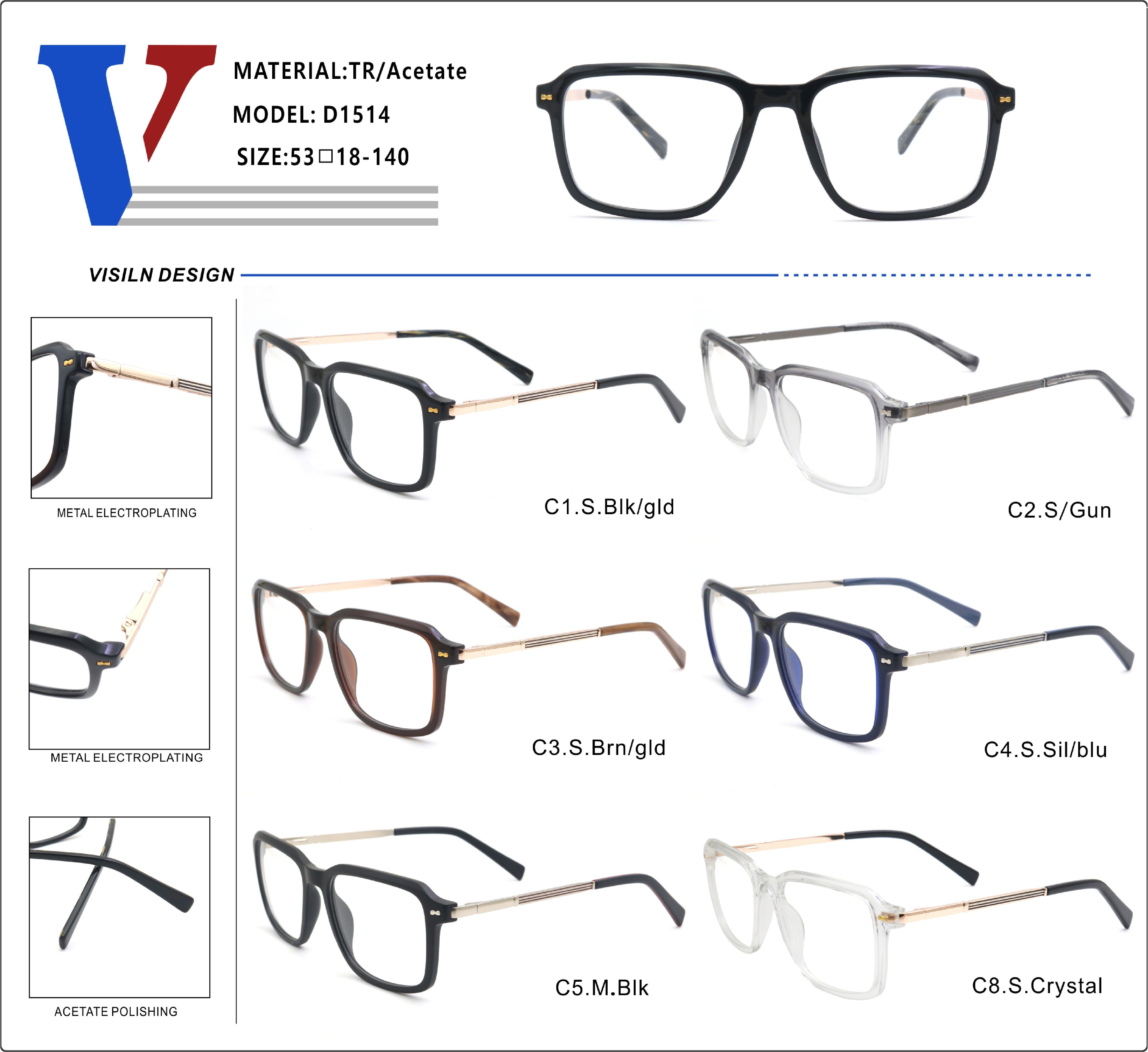 Оправа пластиковая из ацетата TR90 + металл с флексом D1514-DA