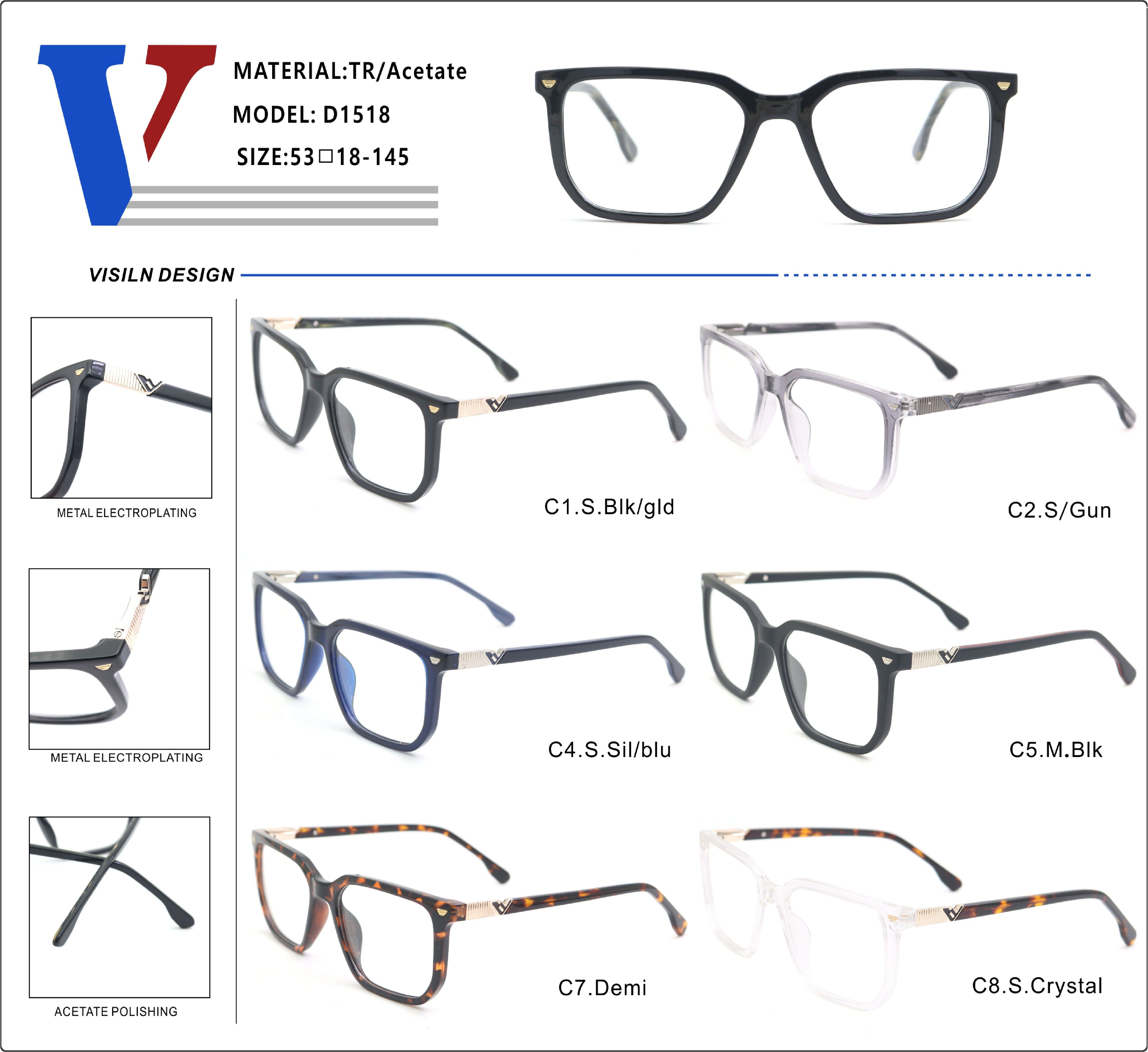 Оправа пластиковая из ацетата TR90 + металл с флексом D1518-DA