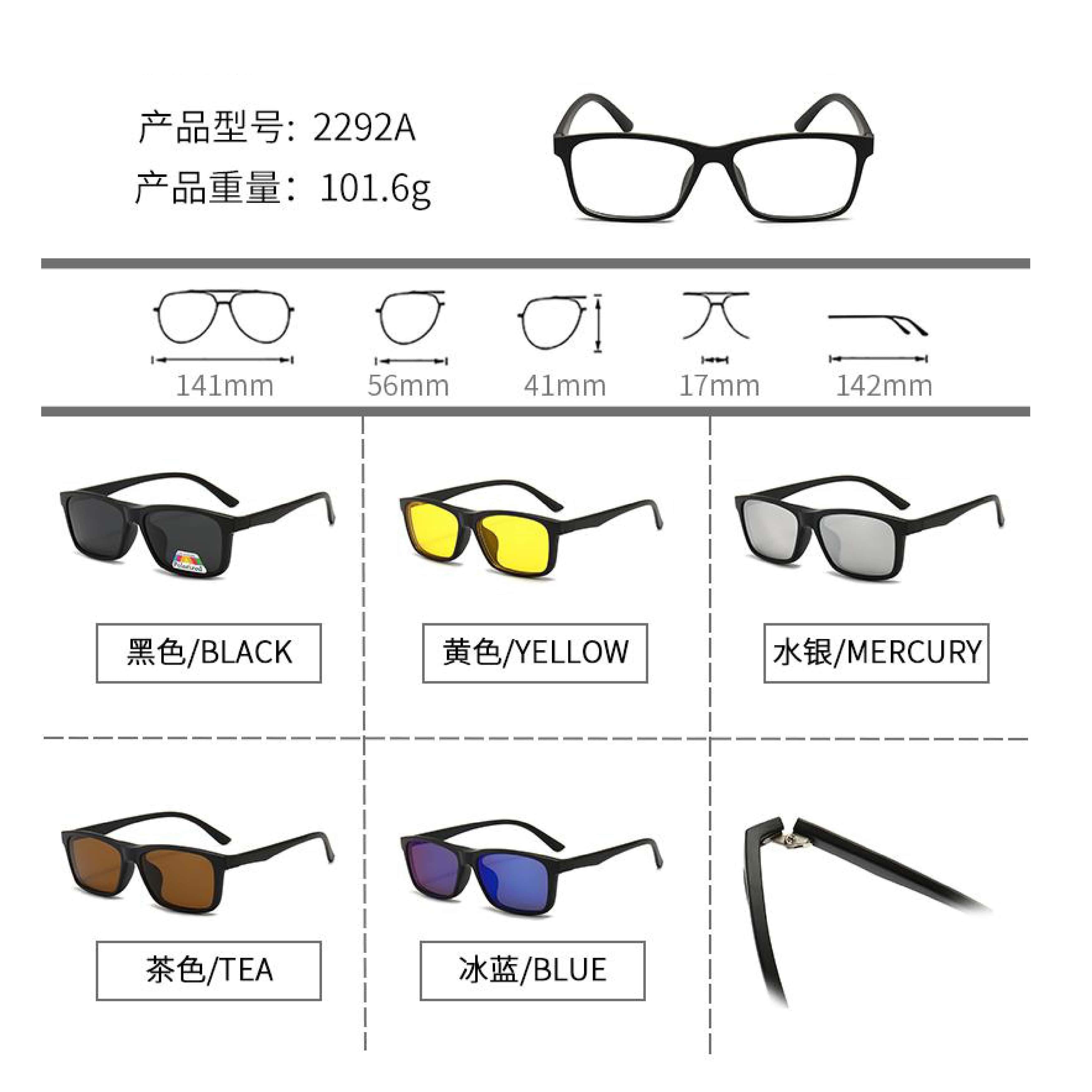 Оправа El Dorado с комплектом поляризационных солнцезащитных насадок (клипон) на магните 2292A (5 штук)