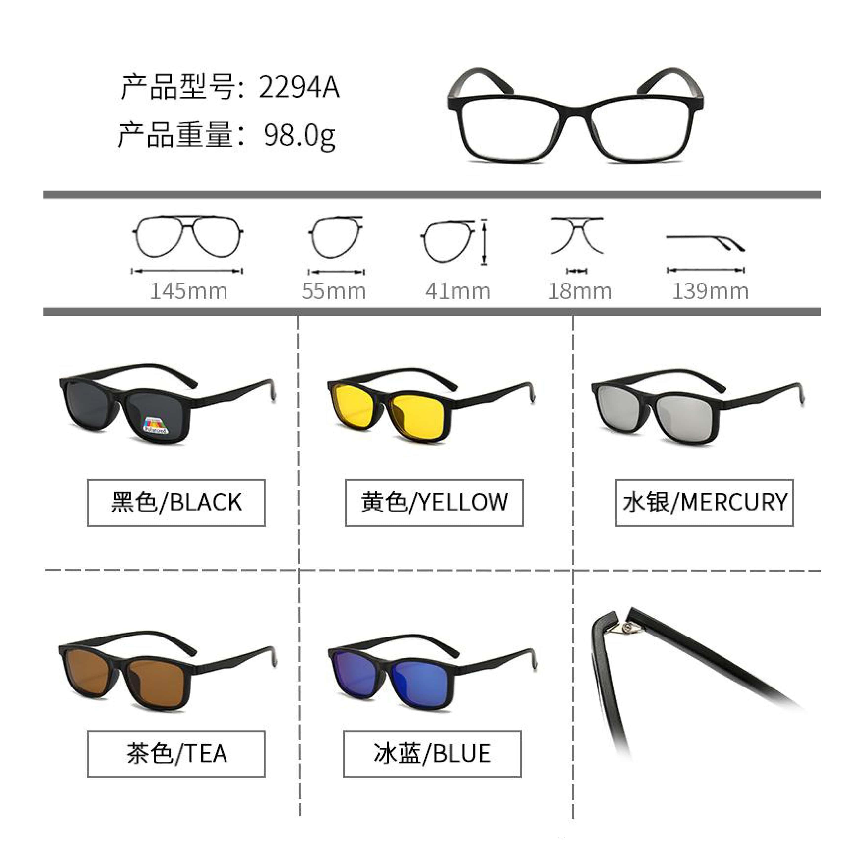 Оправа El Dorado с комплектом поляризационных солнцезащитных насадок (клипон) на магните 2294A (5 штук)