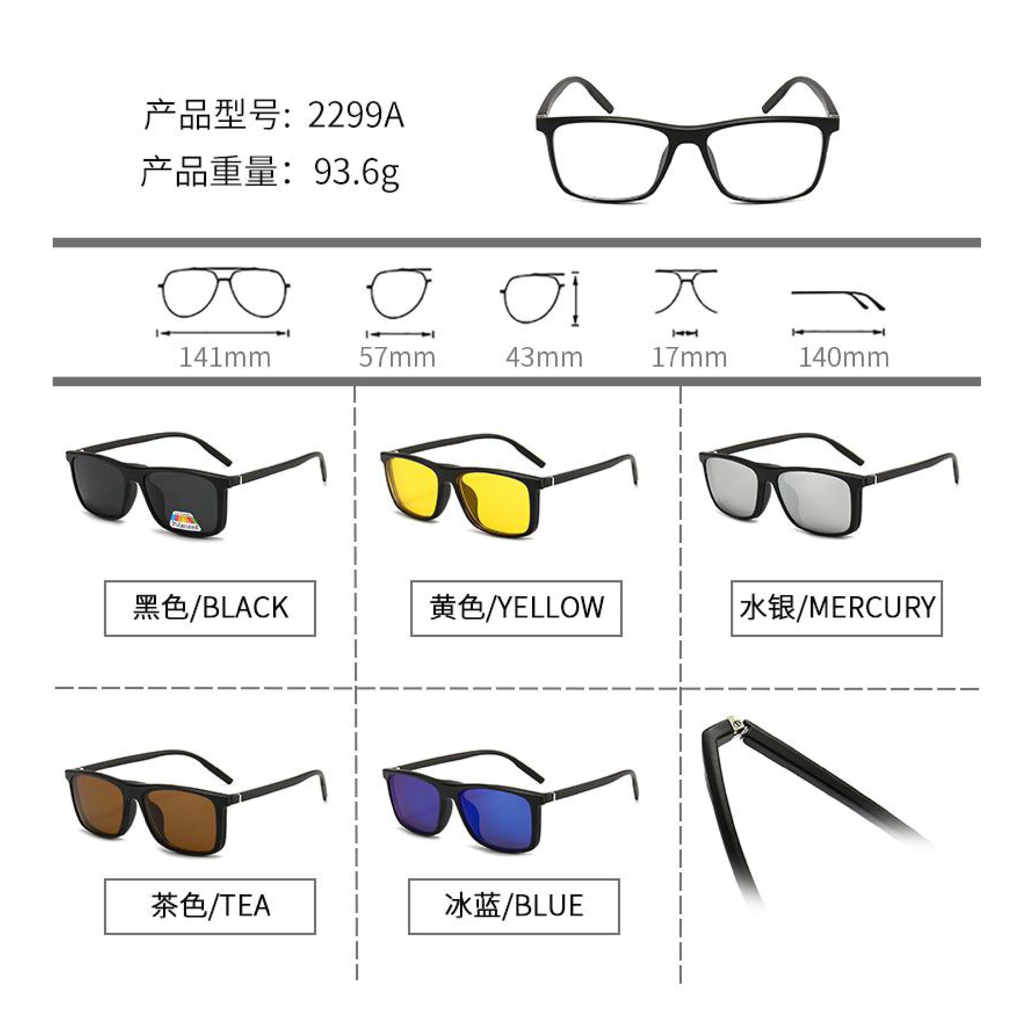 Оправа El Dorado с комплектом поляризационных солнцезащитных насадок (клипон) на магните 2299A (5 штук)