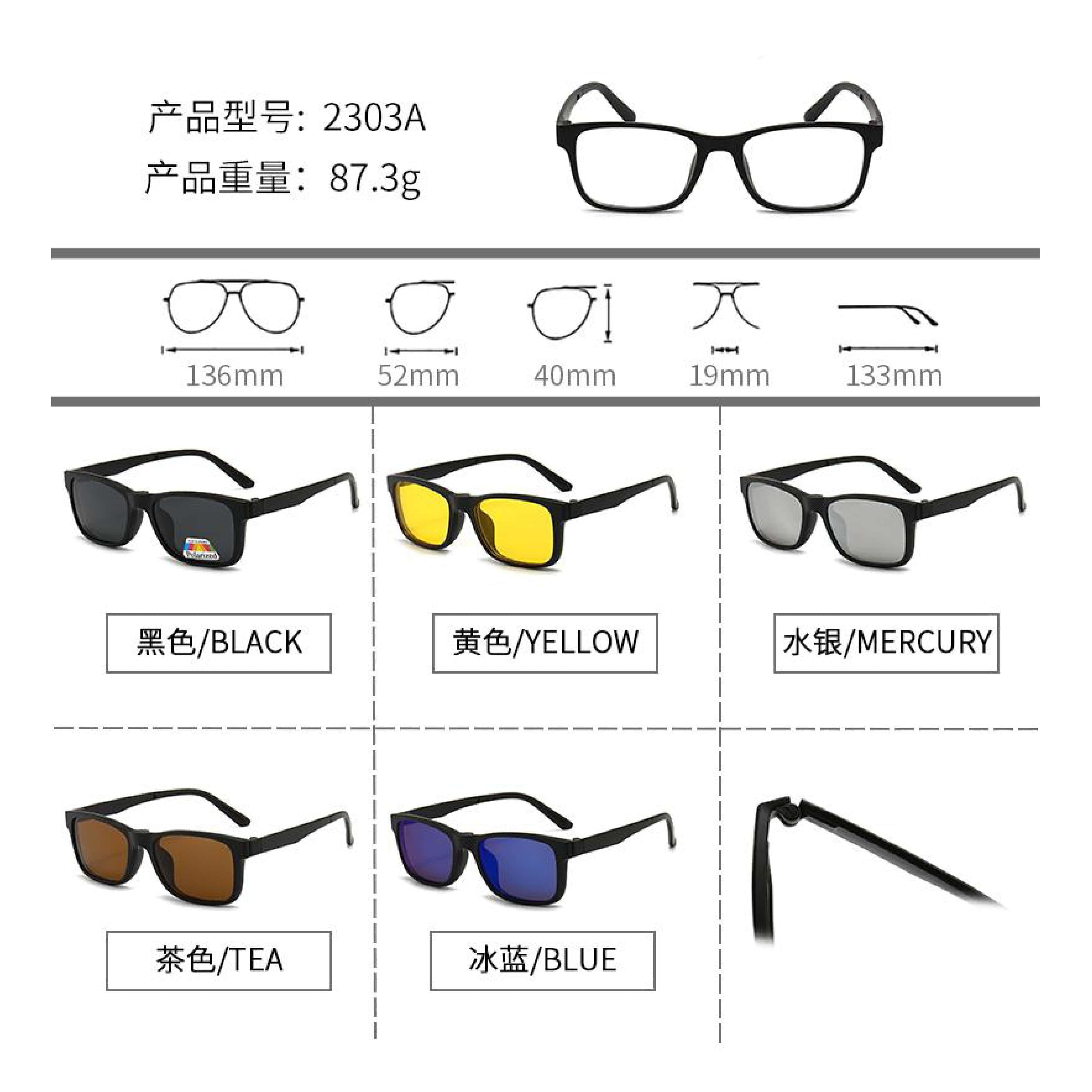 Оправа El Dorado с комплектом поляризационных солнцезащитных насадок (клипон) на магните 2303A (5 штук)