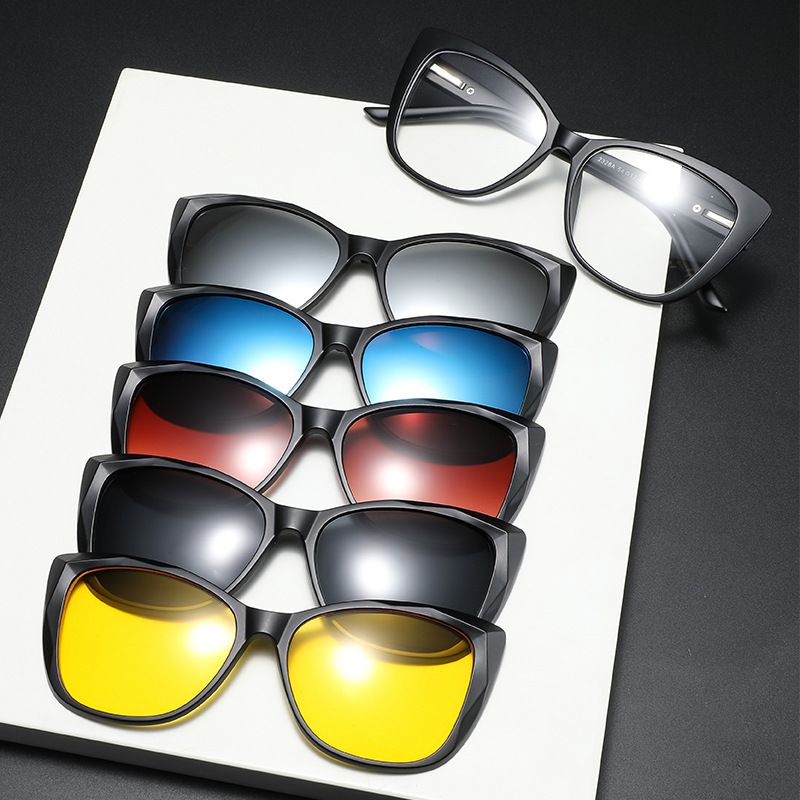 - Комплект: оправа пластиковая + 5 солнцезащитных насадок + кожаная сумка