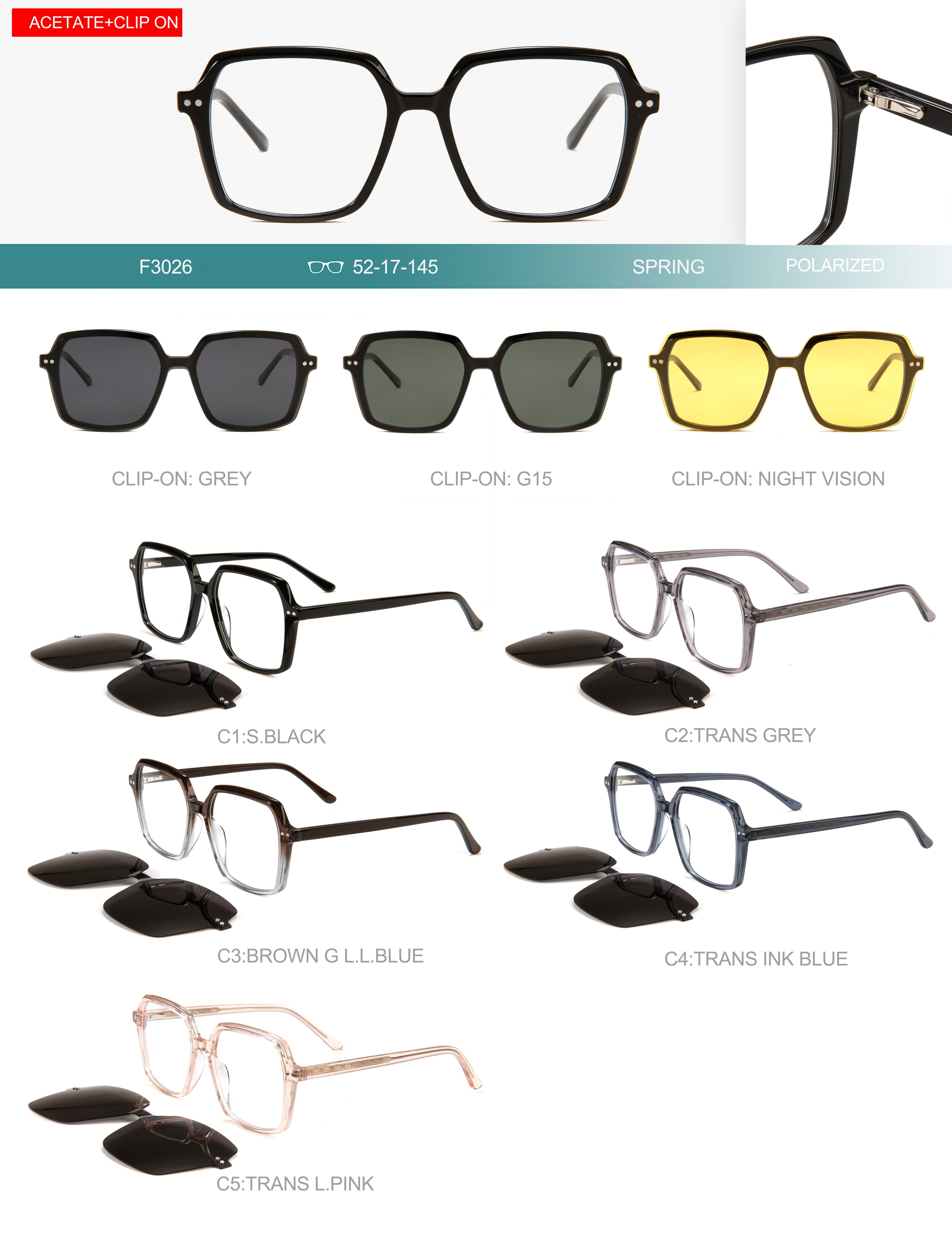Оправа пластиковая из материала ацетат, с флексом + насадка солнцезащитная (клипон) Big City F3026S