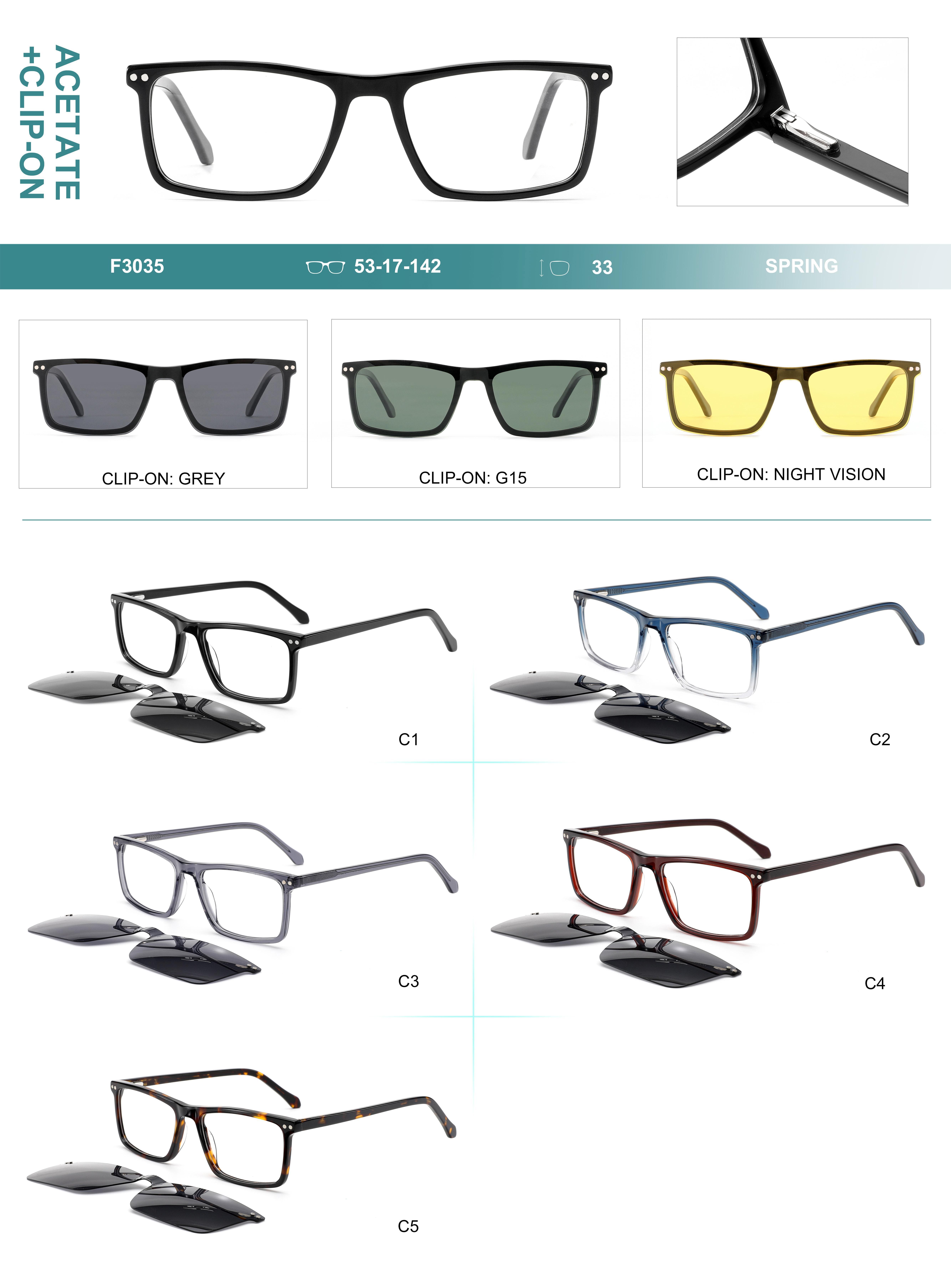 Оправа пластиковая из материала ацетат, с флексом + насадка солнцезащитная (клипон) Big City F3035S