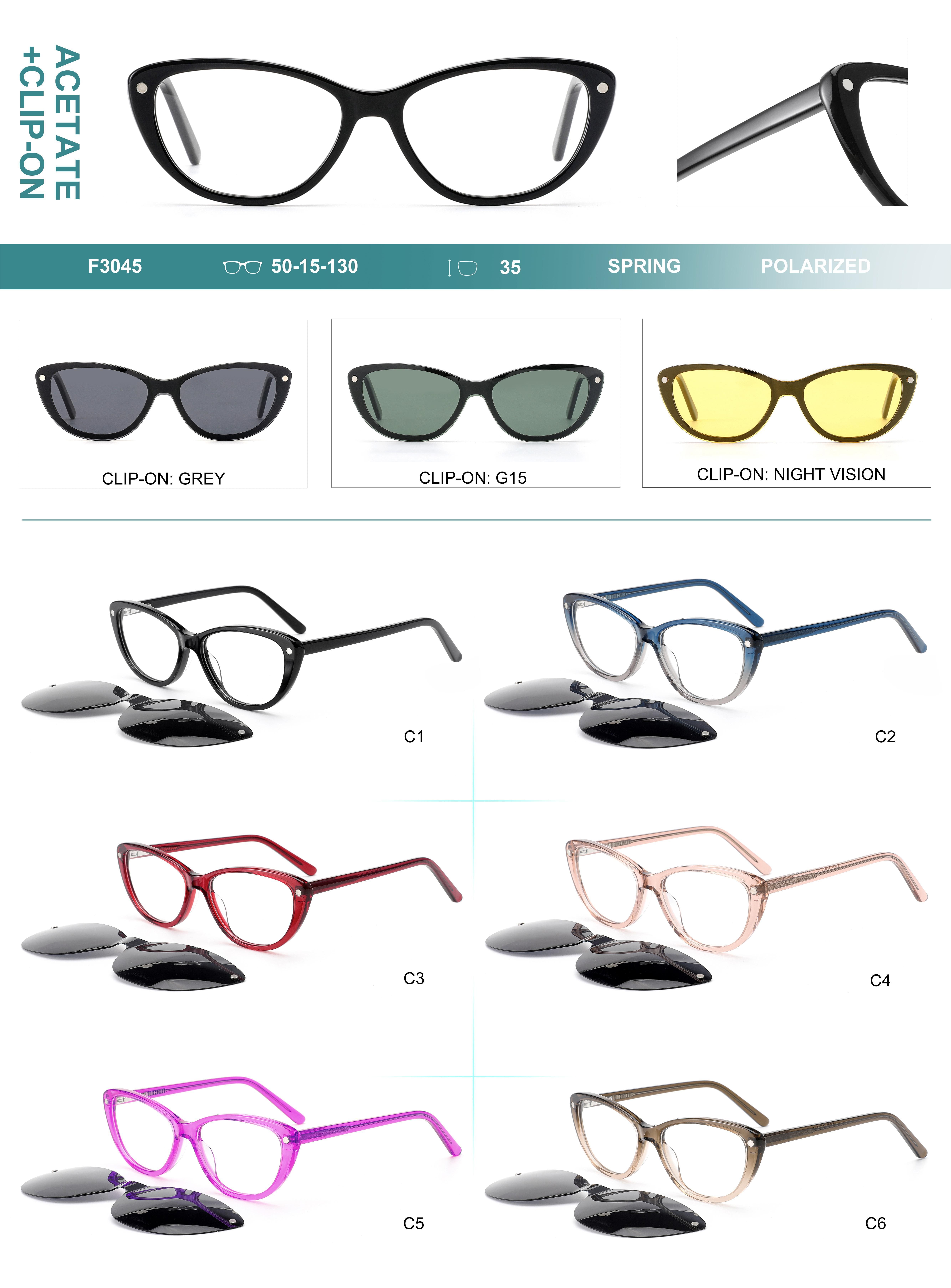 Оправа пластиковая из материала ацетат, с флексом + насадка солнцезащитная поляризационная (клипон) Big City F3045S