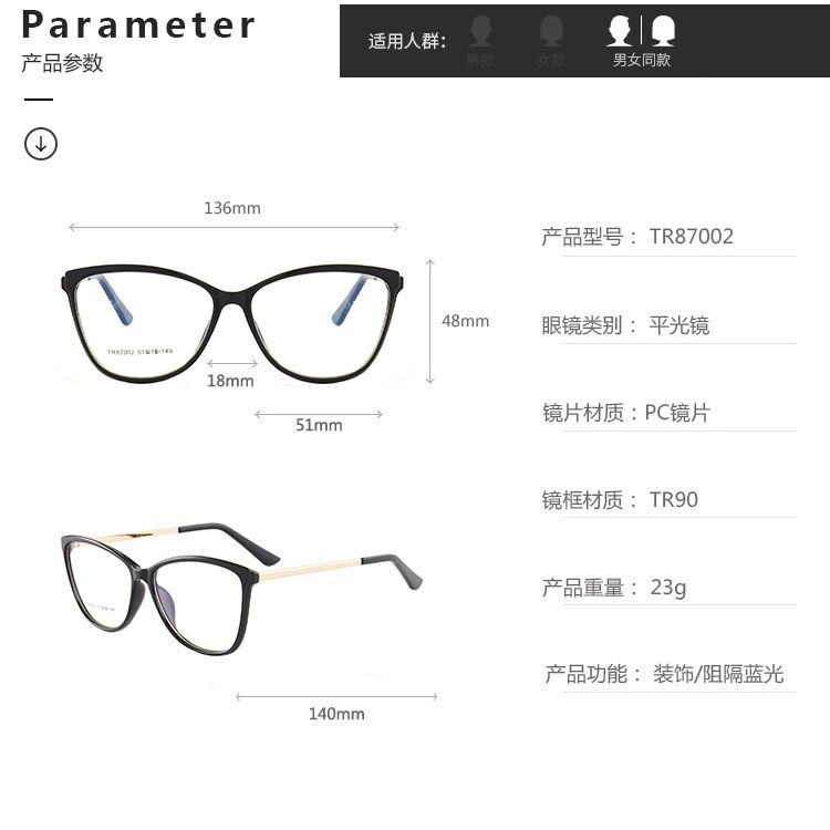 Оправа для очков пластиковая TR90 с защитой от синего света, с флексом FA87005