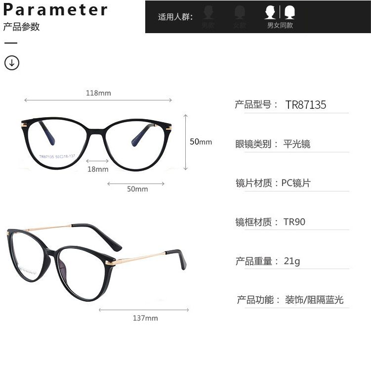 - Материал рамки: пластик TR90