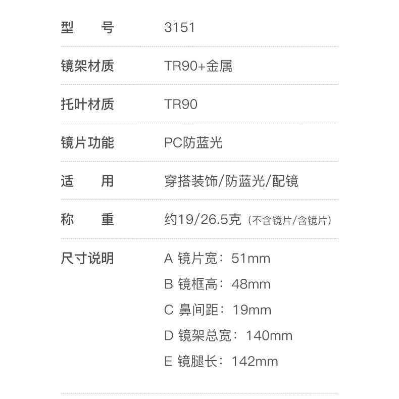 - Размер: ширина линзы - 51 мм, мост - 19 мм, длина заушника - 142 мм