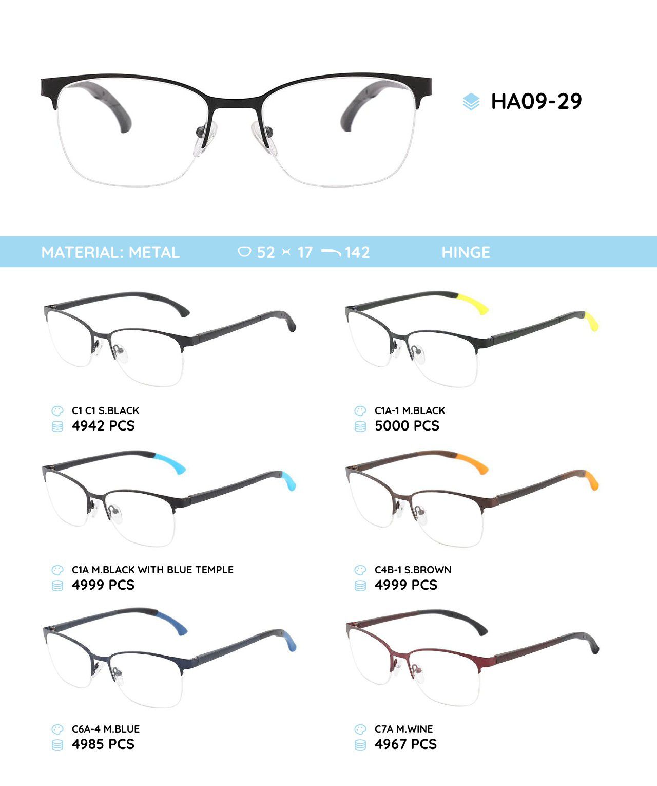 Металлическая оправа с дужками из материала TR-90 с гнущимся наконечником HA09-29