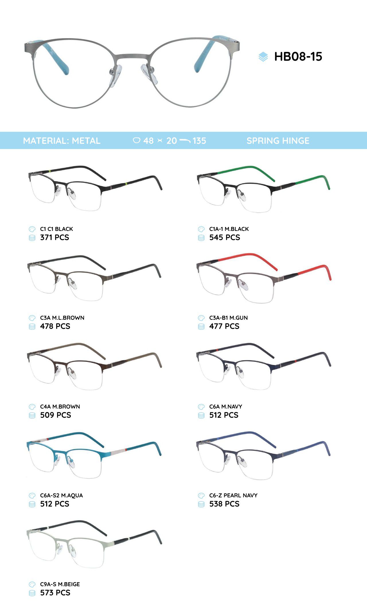 Металлическая оправа с дужками из материала TR-90 HB08-15