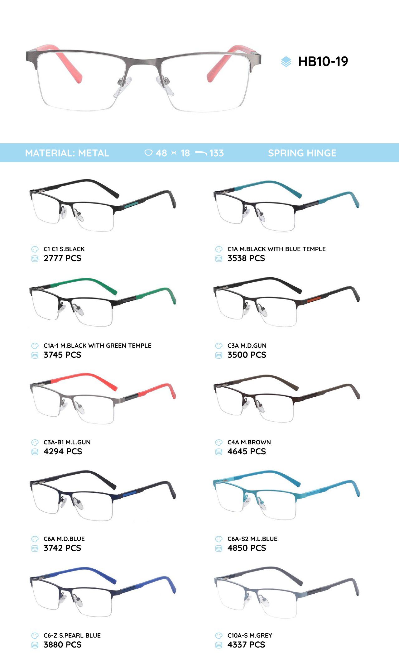 Металлическая оправа с дужками из материала TR-90 HB10-19