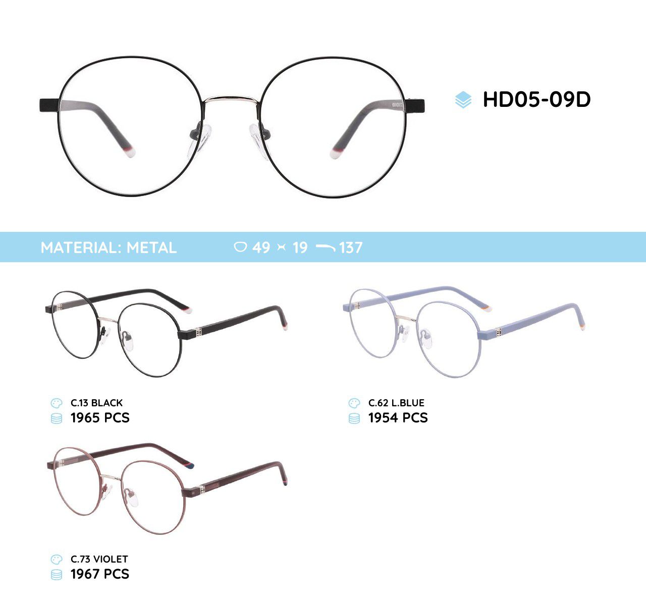 Металлическая оправа с дужками из материала TR-90 HD05-09D
