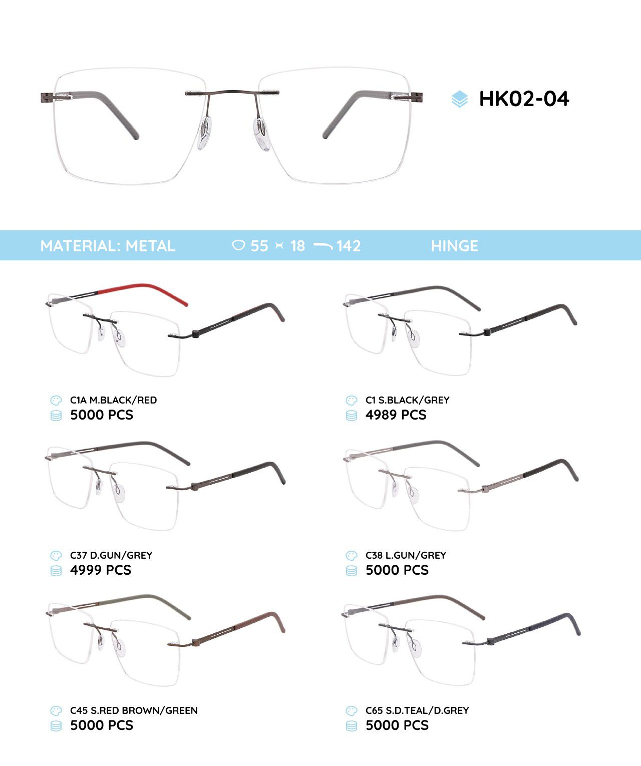 Металлическая безободковая оправа с дужками из пластика TR-90 HK02-04