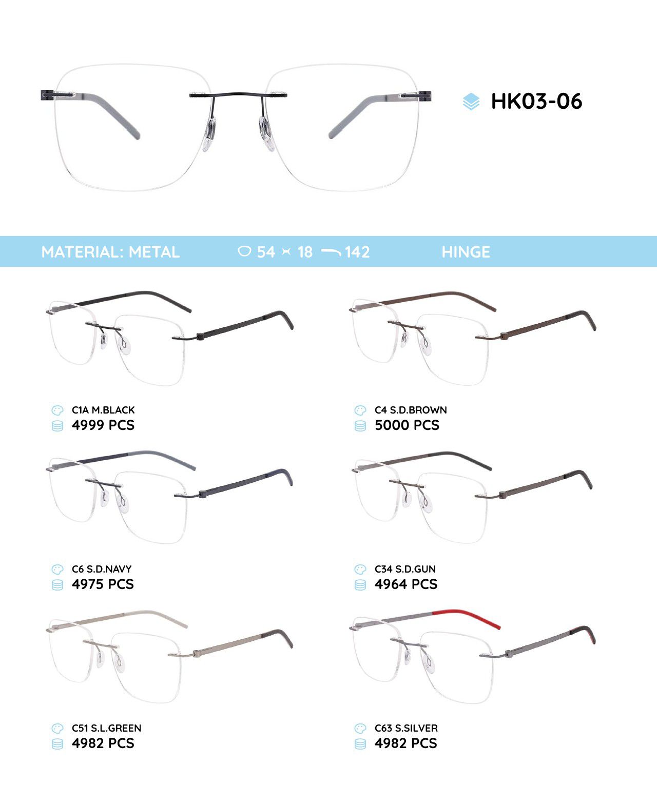 Металлическая безободковая оправа с дужками из пластика TR-90 HK03-06