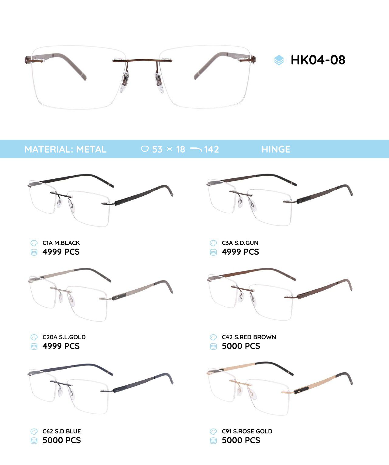 Металлическая безободковая оправа с дужками из пластика TR-90 HK04-08