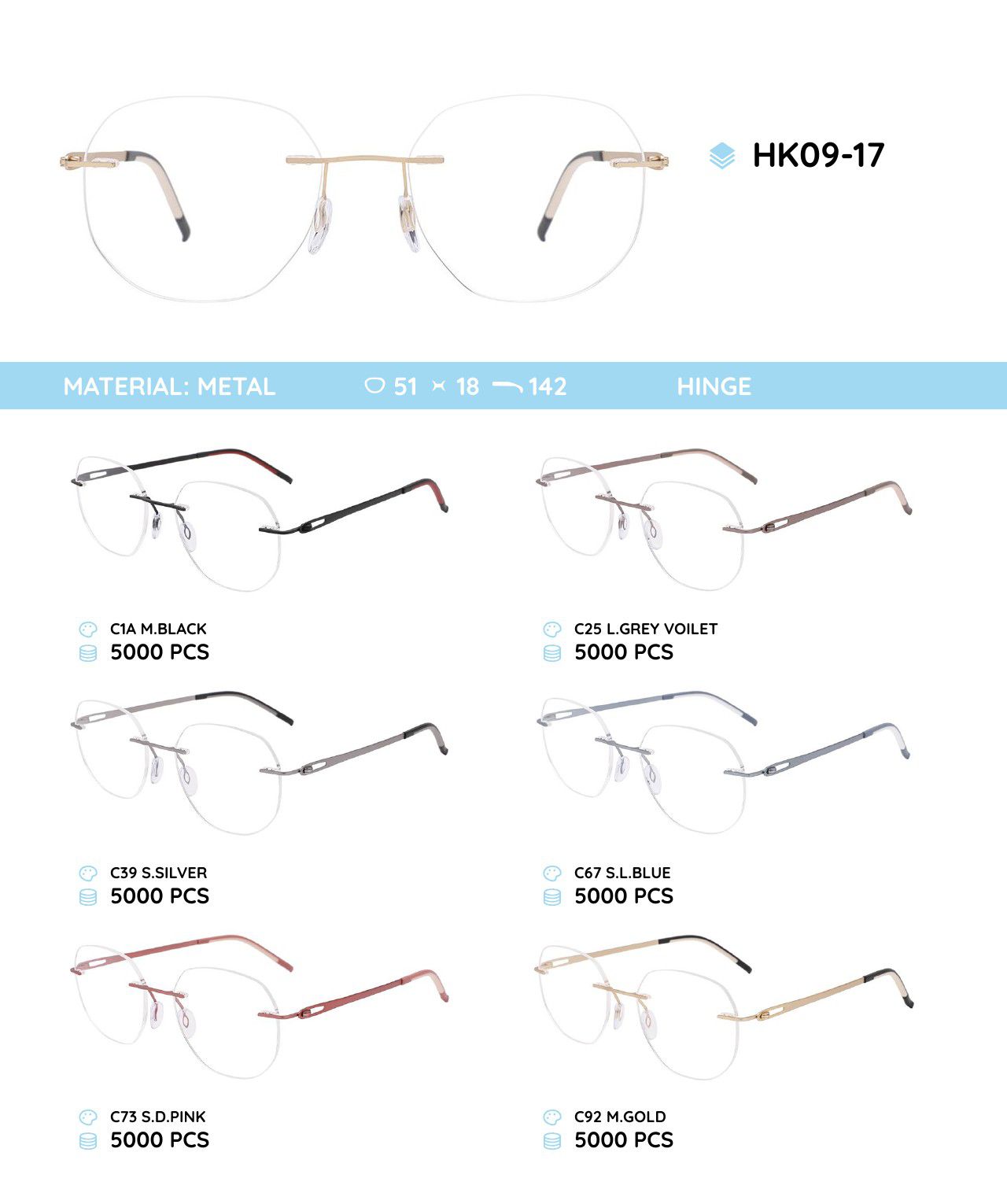 Металлическая безободковая оправа с дужками из пластика TR-90 HK09-17