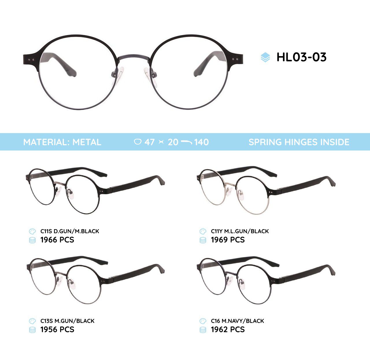 Металлическая оправа с дужками из материала TR-90 со встроенным флексом HL03-03