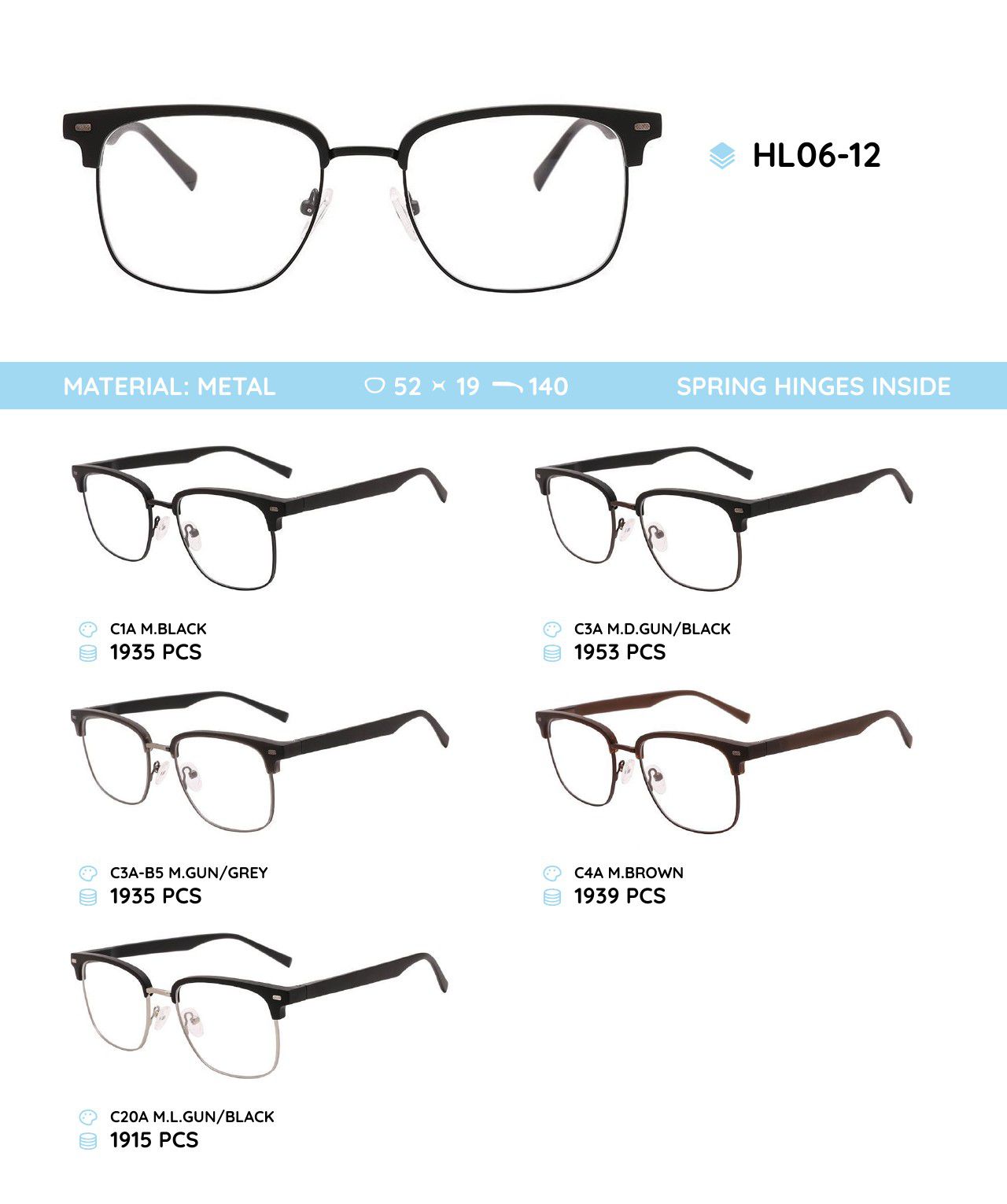 Металлическая оправа с дужками из материала TR-90 со встроенным флексом HL06-12