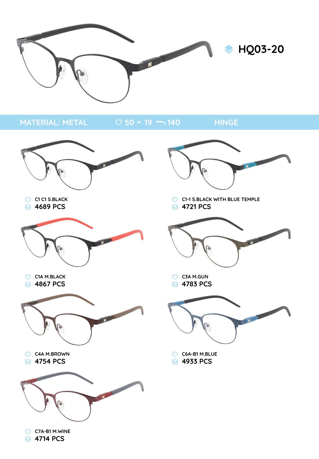 Металлическая оправа с дужками из материала TR-90 HQ03-20