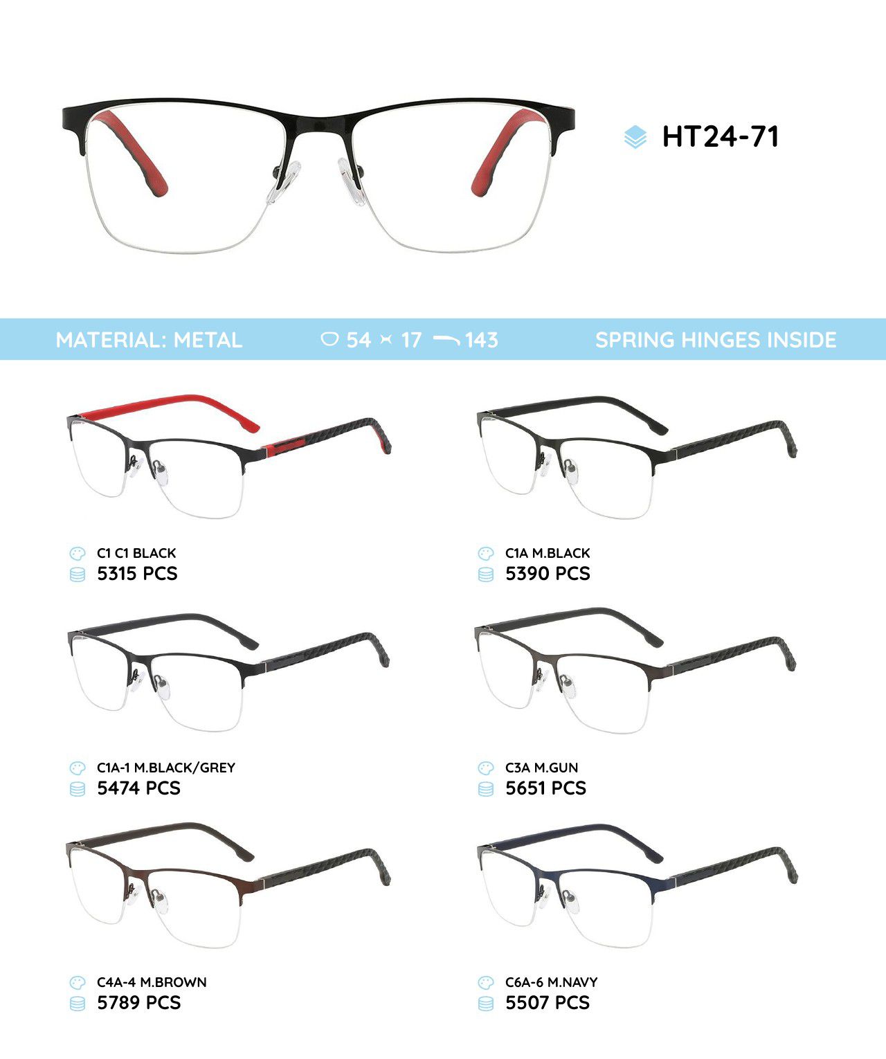 Металлическая оправа с дужками из материала TR-90 HT24-71