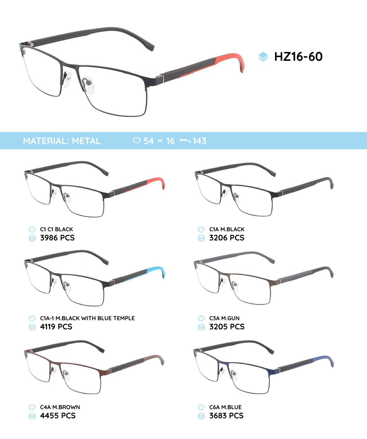 Металлическая оправа с дужками из материала TR-90 HZ16-60