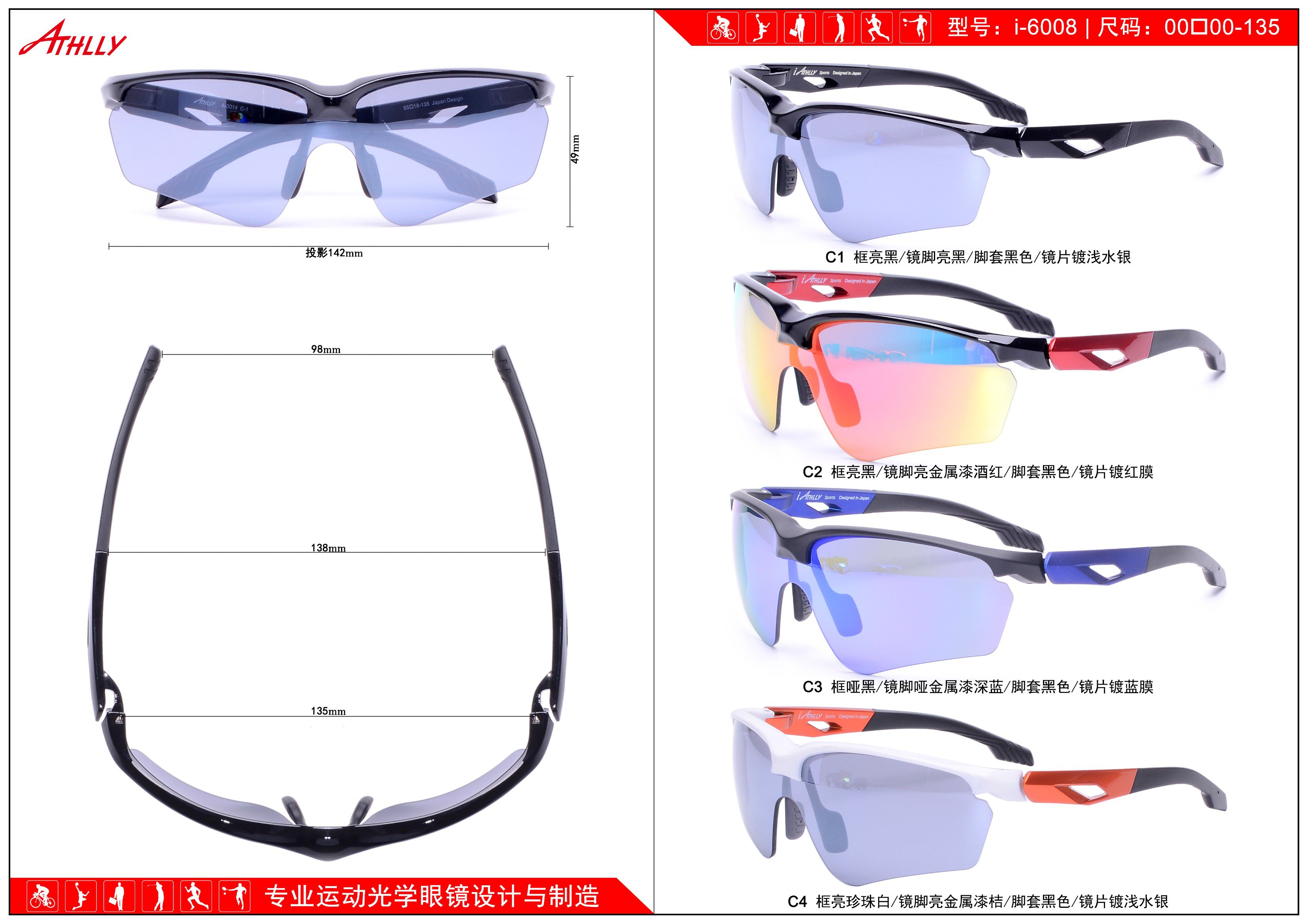 Оправа спортивная полуободковая пластиковая с солнцезащитными линзами Athlly I-6008 (скидки см. в таблице)