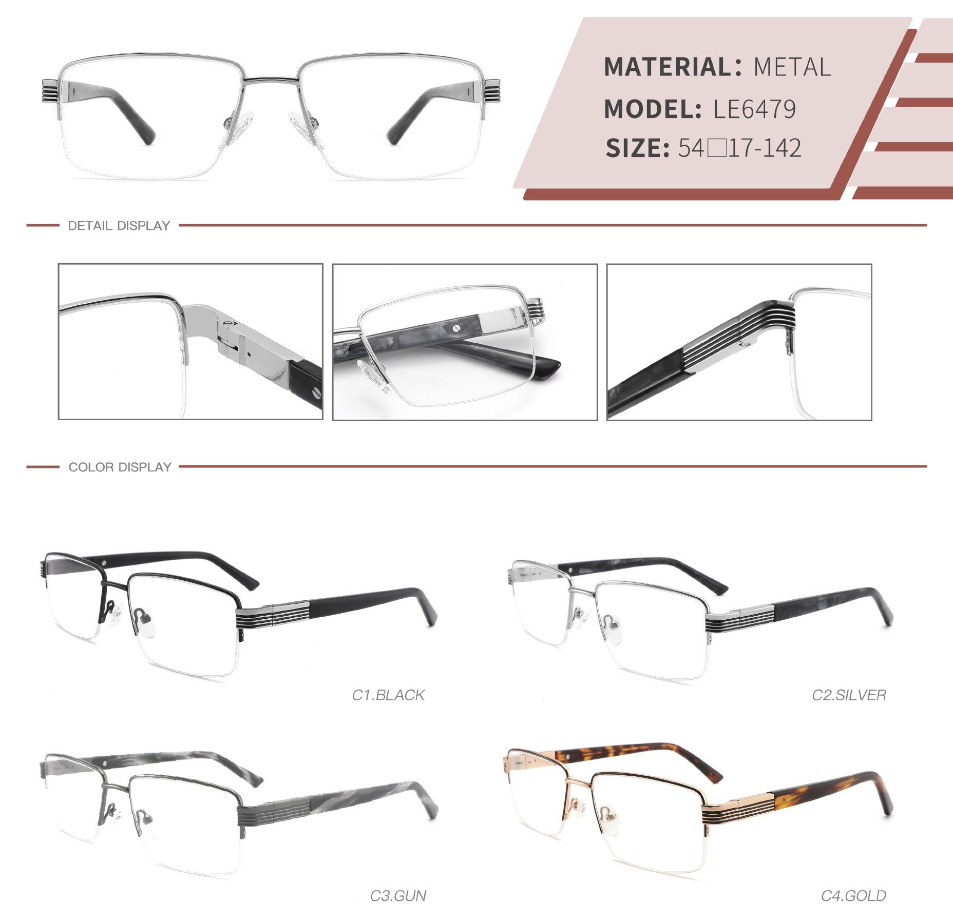 Оправа металлическая полуободковая LE6479-DA