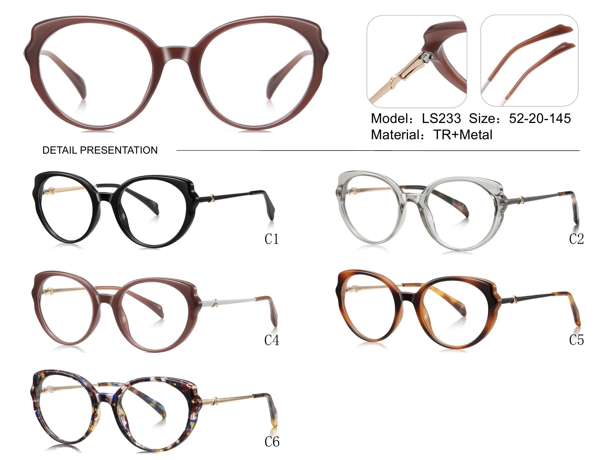 - Материал рамки: пластик TR90+металл