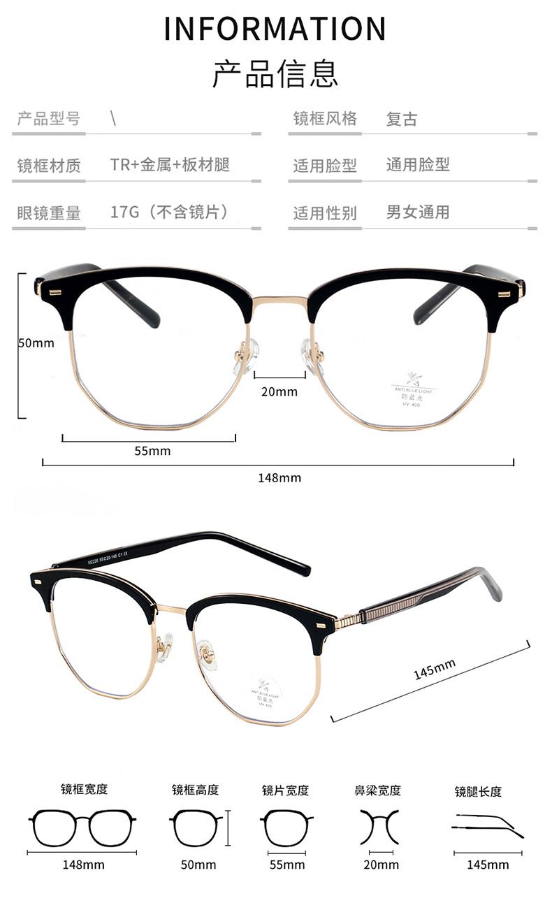 Оправа комбинированная с линзами Blue Ray Cut MAMO M2226
