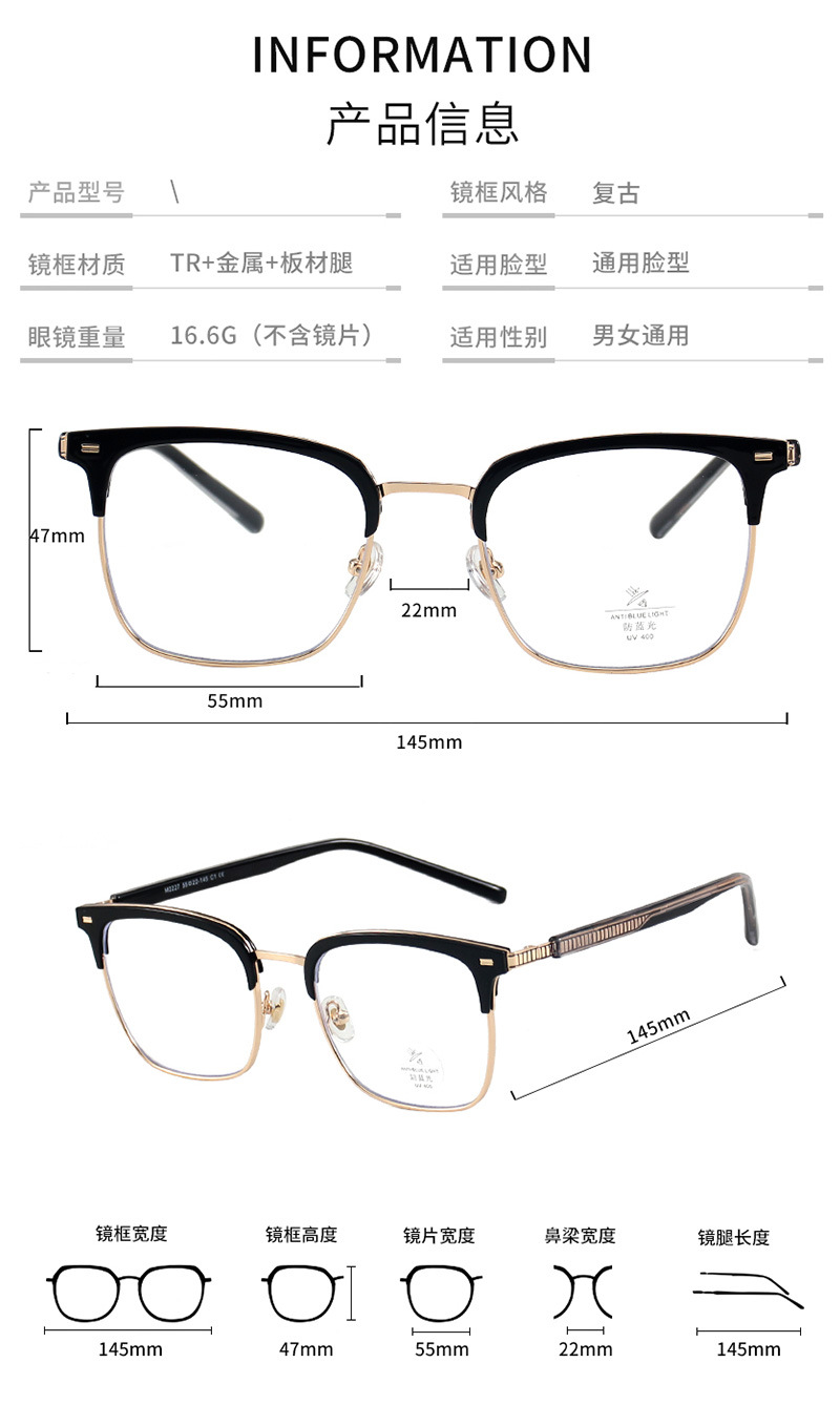 Оправа комбинированная с линзами Blue Ray Cut MAMO M2227