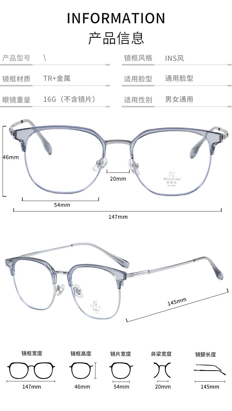 Оправа комбинированная с линзами Blue Ray Cut MAMO M2279