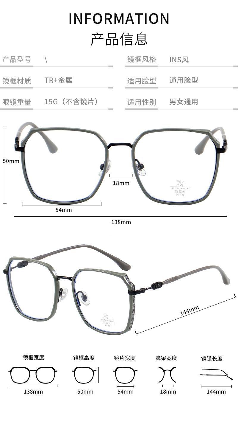 - Материал оправы: металл + пластик TR90