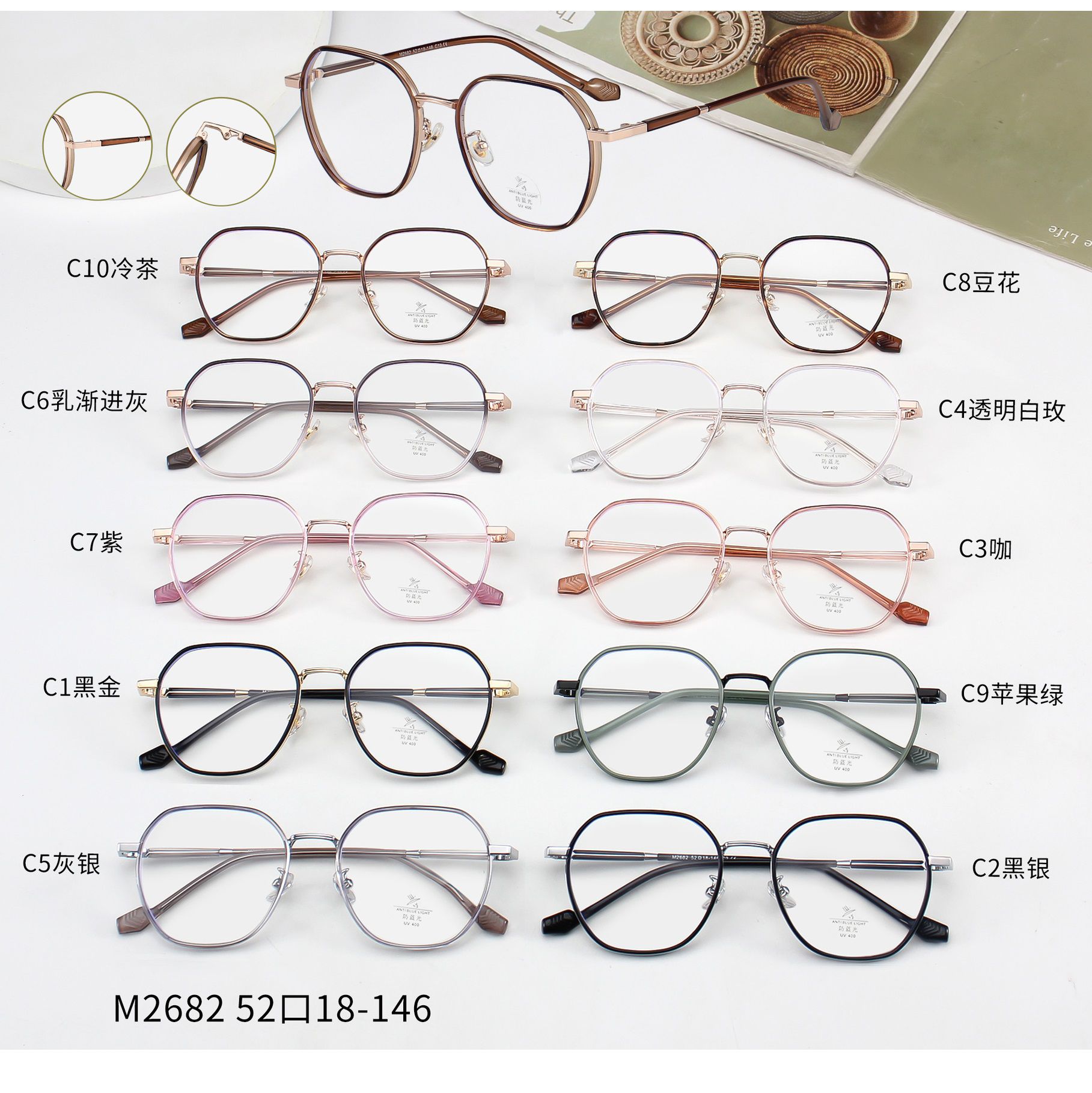 - Материал оправы: металл + пластик TR90