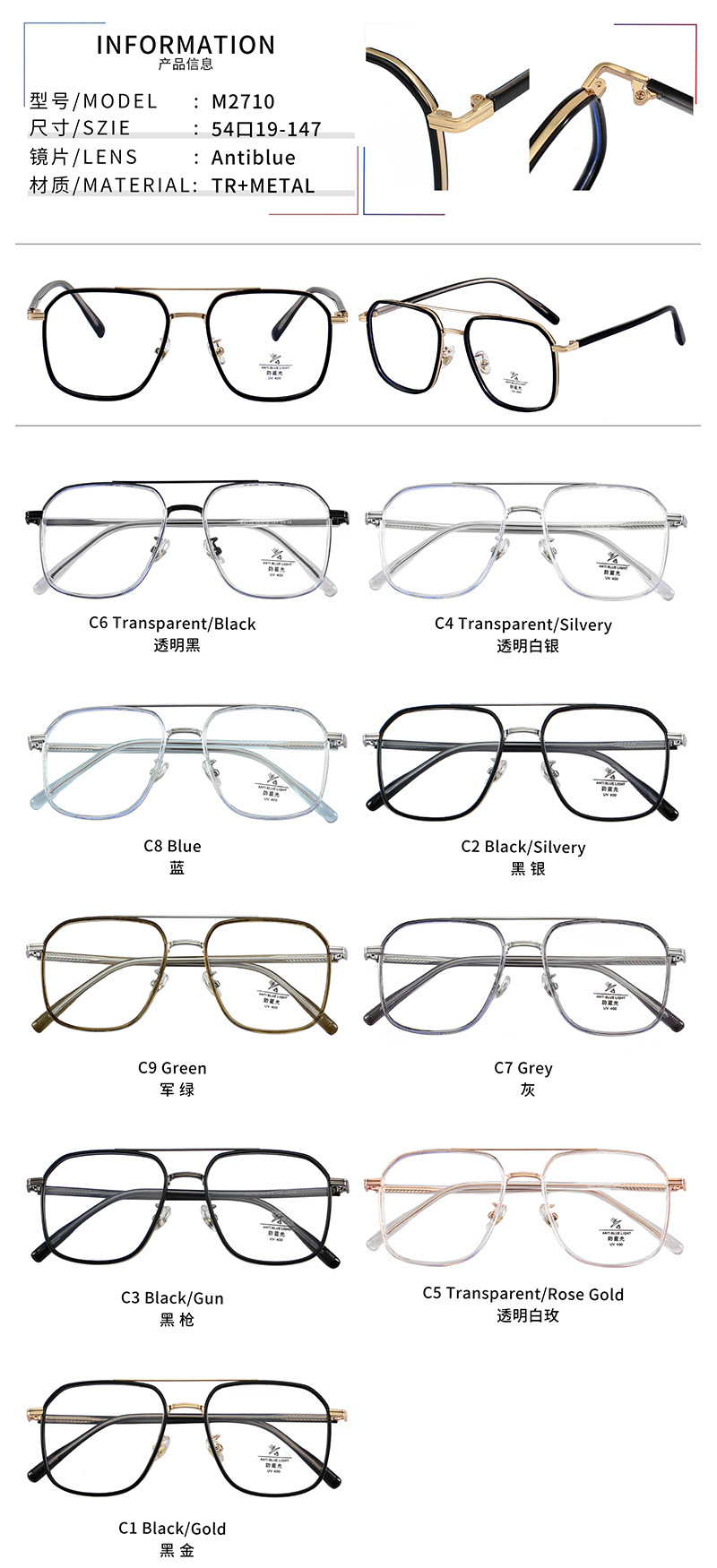 - Материал оправы: пластик TR90 + металл